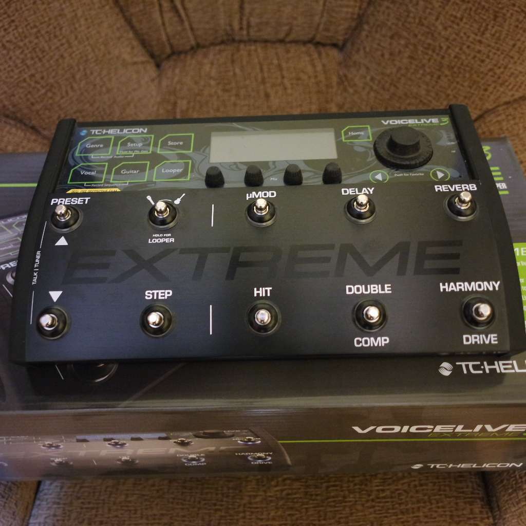 гитарный\ вокальный процессор + лупер TC Helicon VoiceLive 3 Extreme. Полный комплект - шнур для гитары, для наушников, провод мини USB, блок питания ,инструкция