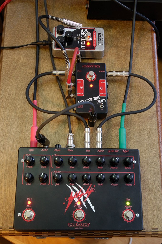 Dol4in, смысл в том, чтобы получить разные цепочки эффектов на разные каналы преампа и при этом переключать и каналы преда, и петли селектора нажатием одной кнопки. Появилась такая задача, мы с заказчиком долго думали как лучше это сделать на уже готовом преампе Deluxe 50 и его селекторе Boss, но нифига не вышло. И мне пришла такая идея, чтоб сделать свой селектор, управляемый с преампа. Потребовалось минимум доработки. Селектор благополучно подключился в петлю, управляющий сигнал благополучно переключает петли A/B при переключении каналов преампа. С помощью тумблера на селекторе можно назначить по какой кнопке преампа в селекторе будут переключаться петли.
