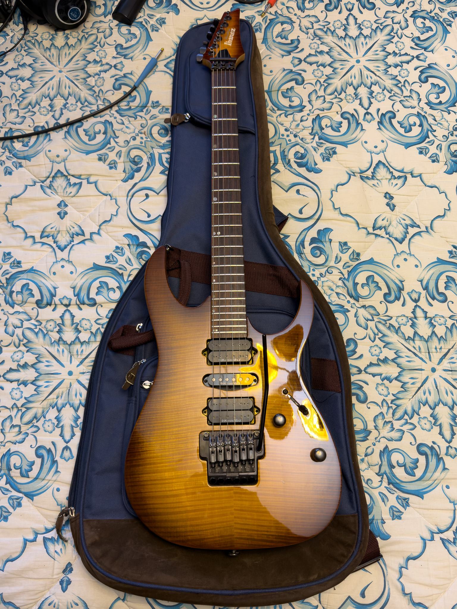 В воскресенье привозит мне гитару, я ее смотрю, при беглом осмотре все красиво. Побренчал немного в свой Stomp HX, проверил машинку, все ок. Распайка звучков странная, но сами звучки родные, а распайку можно поменять, тем более что с гитарой мне отдали старый переключатель позиций (там насколько я помню под разные варианты распайки - разные переключатели). В общем, отдаю я ему запрошенную сумму, получаю гитару с простеньким чехлом, и даже соглашаюсь с просьбой доплатить сверху полторы тысячи за доставку до дому. Ну, сам же согласился.