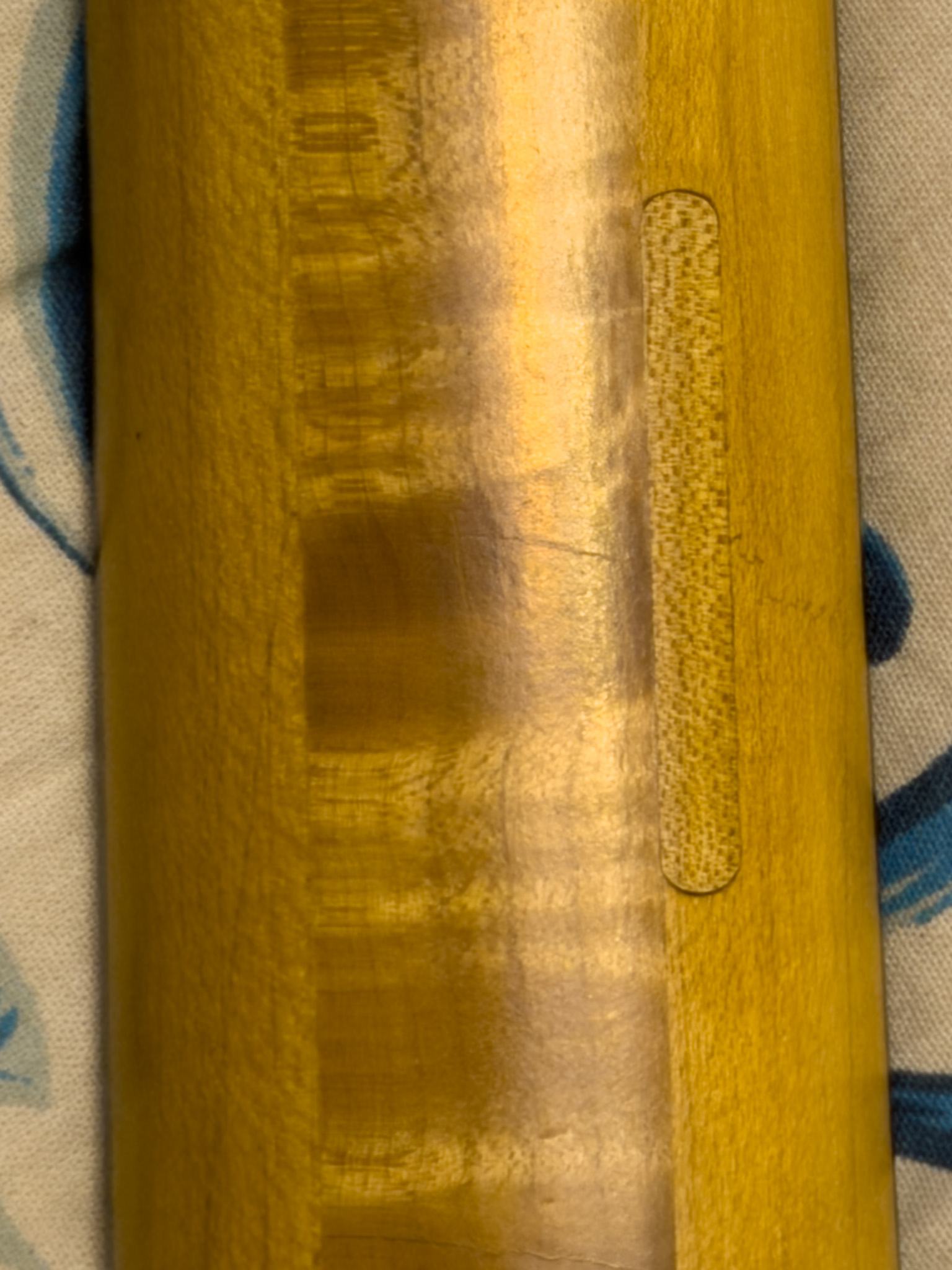 Дальше я на ней побренчал, отфотографировал для друзей и увидел сзади грифа что-то непонятное, похожее на вставку (см. фото). Пишу продавцу, кидаю фото, спрашиваю - говорит, "не знаю, такая была когда покупал", и молчок. Сижу, думаю, начинать спорить, или жить с этим? Осматриваю эту вставку со всех сторон - сделана очень профессионально, выемка прорезана на станке, вставка походу тоже, и вклеено все очень аккуратно. Ладно, соглашаюсь с тем, что видимо с этим придется жить, тем более что гитара вполне живая, машинка Edge Pro - вполне нормальной, а датчики DiMarzio/Ibz действительно оказались очень и очень крутыми, реально на уровне DiMarzio.
