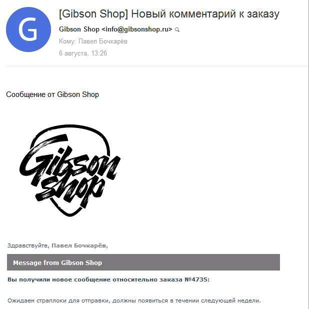 Друзья! Не покупайте ничего в гибсон-шопе! Возможно, с ebay дойдёт быстрее, плюс у вас будет трекинг-номер и никто вам не будет врать.