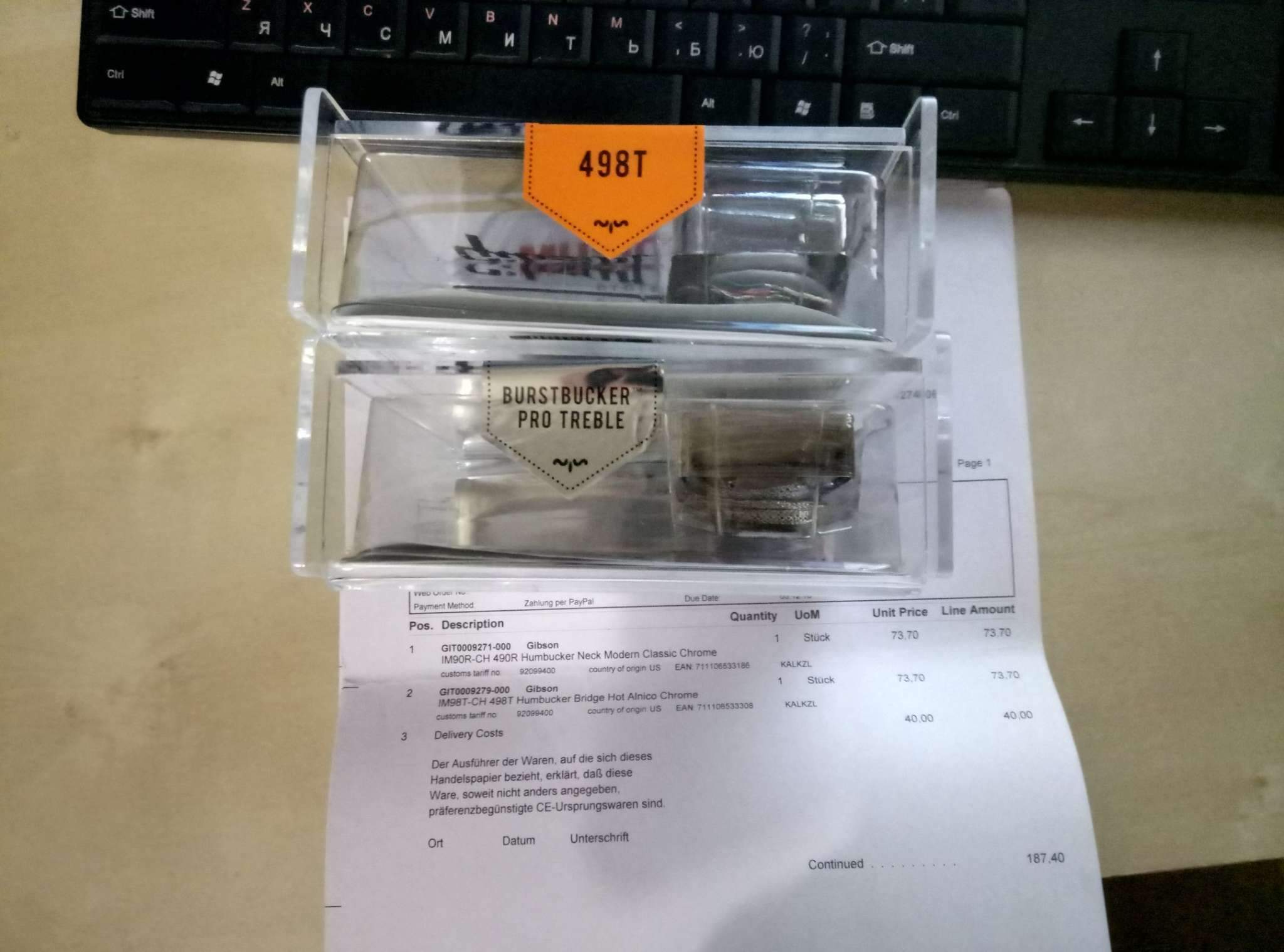 Заказывал два звукоснимателя - Gibson 490R+498T оба с хромовыми крышками.