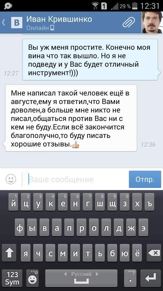 :: Скрины из ВК где я кормлю человека "завтраками" и обещаниями вернуть деньги или прислать инструмент. (