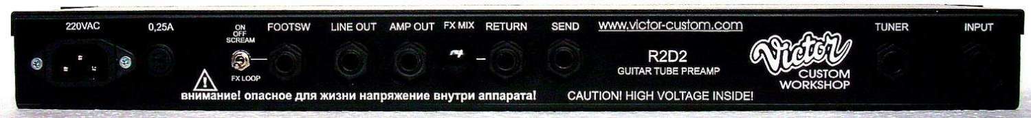 2 лампы 12АХ7/ЕСС83. 3 канала, гейт-супрессор на каналах перегруза. Чистый канал -твин, регулаторы: громкость, низкие. высокие. Переключатель брайт. Перегрузы: тип: крупное зерно, жирный для современной тяжелой музыки. Регуляторы: гейн (2 шт), громкость (2 шт), низкие, средние, высокие. Выключатель гейт-супрессора. Выход: усилитель, в линию (встроенный спикерсимулятор. Питание : адаптор постоянного тока 12вольт, 500мА (в комплекте).
