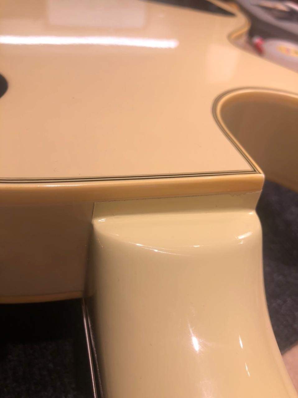 И так есть такой человек тут на форуме Виктор Жирников из Оренбурга. Приобрел у него гитару Burny, до покупки в ходе переписки пел мне, что гриф идеальный и лучше гитары не найти. По фото было видно, что гриф имеет несколько другой оттенок нежели тело гитары, но я предположил, что просто такая цветопередача, тем более, что продавец убеждает, что гриф идеален. Гитару получил в обычном чехле. Закинул на спину и тут ломается дужка крепления ремня(которая оказывается уже ломалась и была замотана изолентой) на чехле и гитара вертикально падает на бетонный пол, с высоты примерно метр. Т.к. в это время я стоял возле стены, то гитара упав прислонилась к стене. Достав и осмотрев ее я увидел лишь небольшой скол краски на нижней части гитары, возле канта. Ну думаю ни чего страшного, бывает.