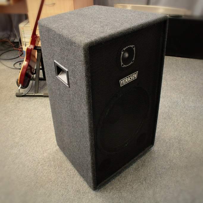 Конструкция имеет внутри ребро жесткости по той же технологии, что применяется в гитарных кабинетах. Корпус трапецеидальный формы для подавления стоячих вол внутри и получения более широкой диаграммы направленности при использовании нескольких колонок.