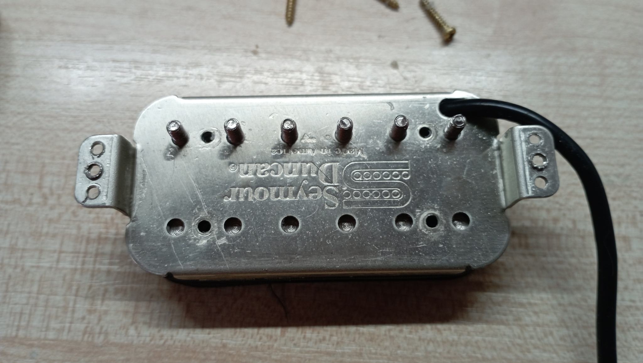 Гитара приобреталась в немецком music store. Наберите в поисковике charvel pro-mod dk24 hh desert sand и посмотрите как он выглядит на сайте производителя. То что именно у этого датчика винты в обеих катушках как раз подтверждает то, что он оригинальный - китайцы скопировали бы исходный вариант и написали бы маде ин америка - теперь этой надписи на датчиках Сеймур Дункан нет - удивительно, что Вы этого не знали. Шрифт лого на катушке тоже нового образца без острых засечек. А в бридже стоит tb-4 которому лет 15 со старым лого. Я бы не рискнул сейчас покупать новый SD даже в магазине.
