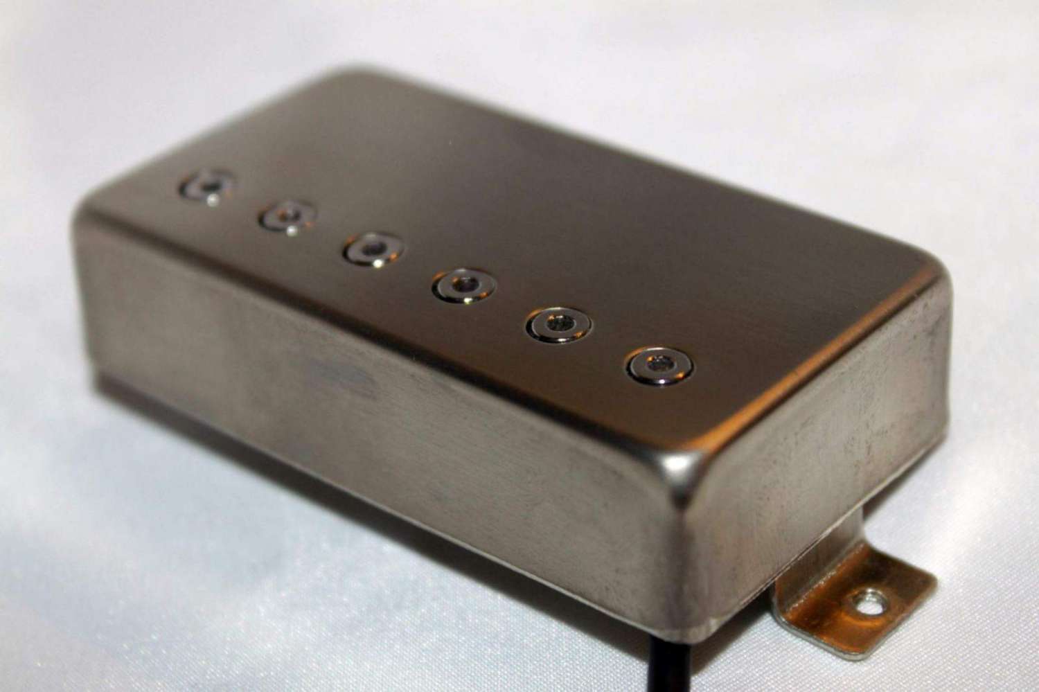 Датчик изначально рассчитывался на трешевое и прочие тяжелометальные направления, с учетом специфики: очень четкая атака, ударность на низких частотах, характерный и акцентированный щелчок в начале звучания ноты. Проблемой был характерный песок, своеобразная сыпучесть на высоких нотах при быстром штрихе, некоторая пилорамность на тонких струнах. По этим причинам работа над подобными датчиками временно приостановилась, но последнее время стали очень часто интересоваться подобным типом, поэтому я решил попробовать снова. В итоге был подобраны оптимальный калибр провода и параметры, чтобы максимально устранить подобные артефакты которые были ранее. Датчик получил крышку из никельсильвера и без нее он изготавливаться не будет. Крышка подрезает ненужные верхние частоты и именно она добавила характера в звучания, замаскрировав ненужный верх. В итоге небольшой шорох по высоким хоть и есть, НО он стал на том уровне, при котором он уже не мешает, а добавляет прорезаемости, но вместе с тем датчик звучит очень плотно. Ритм очень четкий и жирный, необходимость понижения строя для получения более плотного звука отпадает. Осталось, как уже говорил, отслушать его на разных инструментах, при необходимости сделать минимальные корректировки, записать видео и официальное введение в серию. Данный датчик рекомендован исключительно в бриджевую позицию, нековый будет подготовлен чуть позже. К слову внешний вид у датчика весьма харизматичный и узнаваемый.