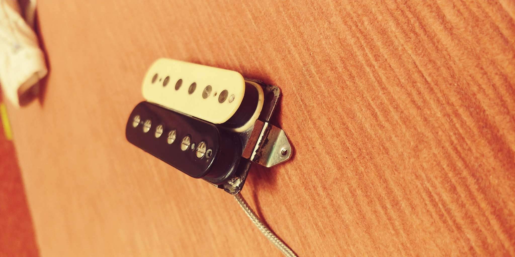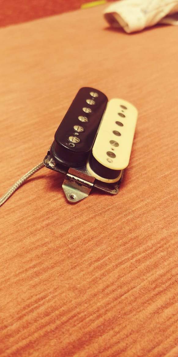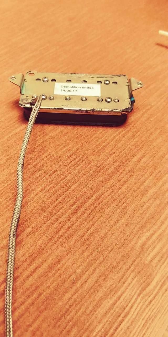 Станина наша, сердечники наши, наклейка тоже, но почему-то провод заменен на экранированный одножильный, такими кляксами, как он тут напаян, мы никогда не паяем, явно это чьи-то художества, магнит у Demolition керамический, на фото похоже на алнико, чего обычно тоже мы не делаем (как например есть негласная версия Grizzly на алнико 5, которая иногда изготавливается). Датчик может и оригинальный был, но модифицировали его достаточно глубоко.