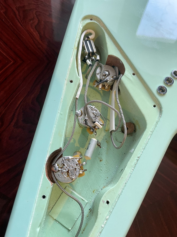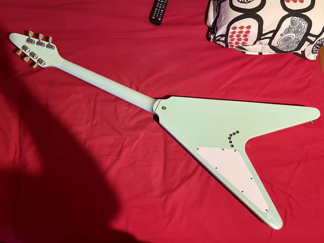 Гитара 1986 года выпуска (серийный номер 82156520, но ныне он закрашен), была перекрашена (нитрой) и переделана стилистически под стрелу 1958 года (струны сквозь корпус + расположение ручек на пикгарде)