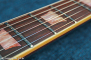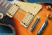 Данный инструмент, как нетрудно догадаться, воплощение Gibson Les Paul Standard от известной японской конторы Aria Pro II. Гитара в отличном состоянии - хороший ресурс ладов, ровный гриф, железо в полностью рабочем состоянии. Естественно, как и подобает лесполу, корпус и гриф изготовлены из красного дерева весьма хорошего качества. Электроника на гитаре аналогична всем лесполам - две громкости, два тона, трехпозиционный переключатель. Датчики на гитаре — окололегендарные DiMarzio PAF, которые, несмотря на не очень большой выход, великолепно справляются с перегрузом, давая классическое жирное леспольное звучание, а на чистом звуке выдают удивительно яркий и открытый тембр. Переключение на нековый датчик еще более подчеркнет сочный звук, которым так славятся краснодеревянные гитары. Дерево отлично резонирует и даёт такой длинный и жирный сустейн, который неотличим от прототипа. В целом гитара представляет собой отличную винтажную реплику Леспола, за свою цену выдавая саунд "намного дороже". И если от инструмента требуется в первую очередь "тот самый звук", качество и надежность - этот Леспол - достойный вариант!