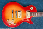 Данный инструмент, как нетрудно догадаться, воплощение Gibson Les Paul Standard от известной японской конторы Aria Pro II. Гитара в отличном состоянии - новые лады, ровный гриф, железо в полностью рабочем состоянии. Естественно, как и подобает лесполу, корпус и гриф изготовлены из красного дерева весьма хорошего качества. Электроника на гитаре аналогична всем лесполам - две громкости, два тона, трехпозиционный переключатель. Датчики на гитаре это два DiMarzio, обладая стенобитным выходом, они хорошо справляются с перегрузом, давая классическое жирное леспольное звучание, а на чистом звуке выдают удивительно яркий и открытый тембр. Переключение на нековый датчик еще более подчеркнет сочный звук, которым так славятся краснодеревянные гитары. Дерево отлично резонирует и даёт такой длинный и жирный сустейн, который неотличим от прототипа. В целом гитара представляет собой отличную винтажную реплику Леспола, за свою цену выдавая саунд "намного дороже". И если от инструмента требуется в первую очередь "тот самый звук", качество и надежность - этот Леспол - достойный вариант!