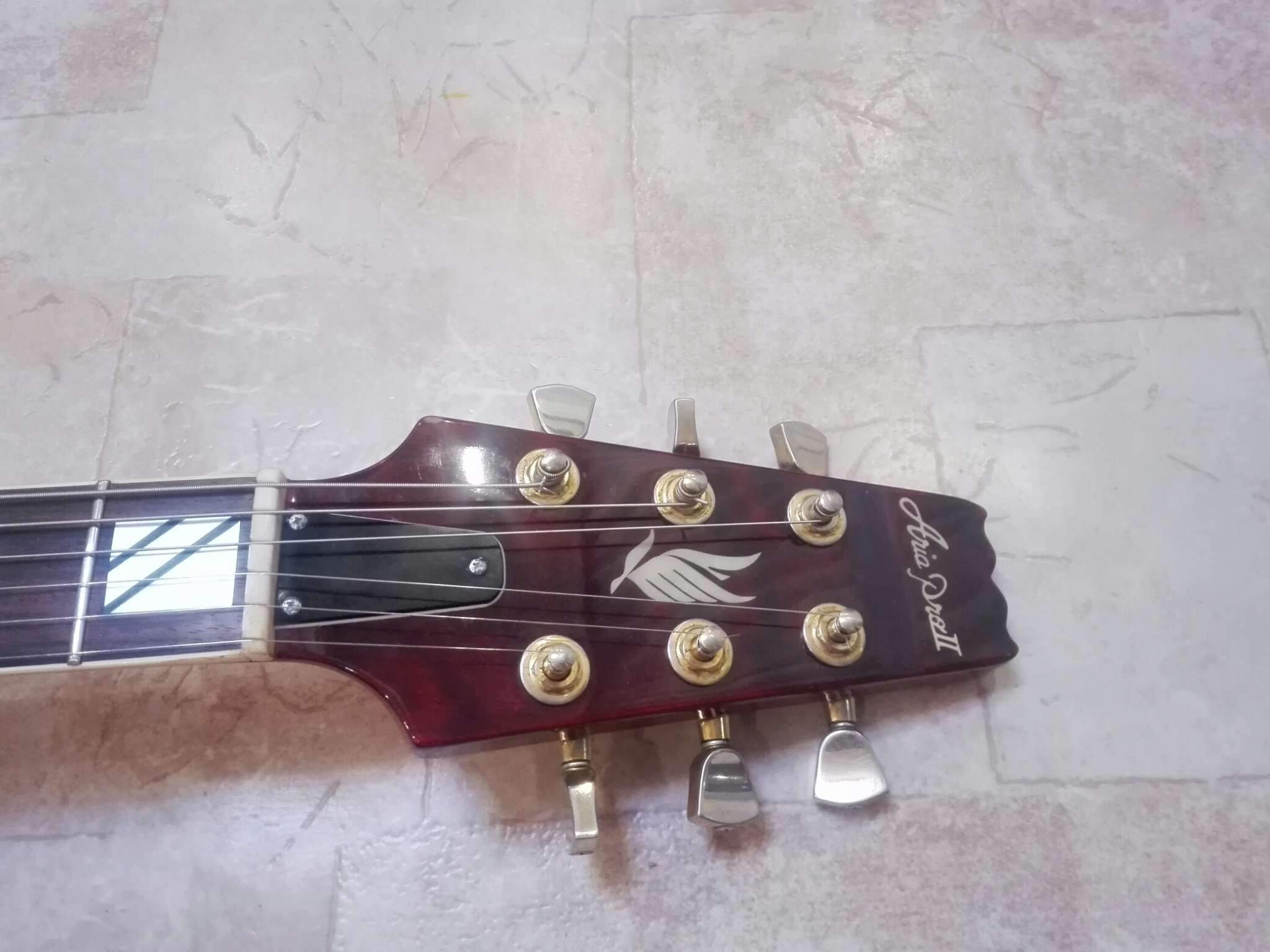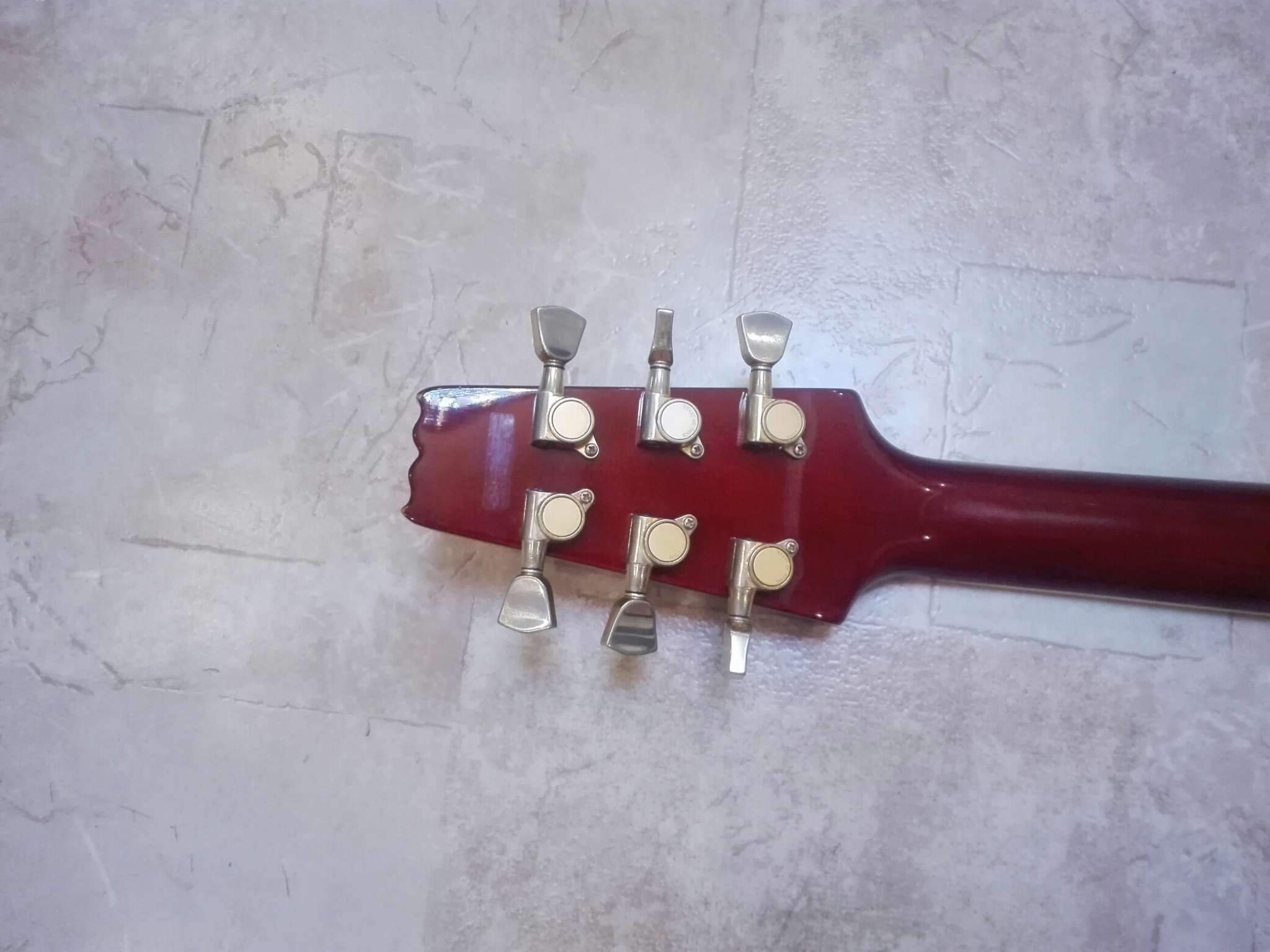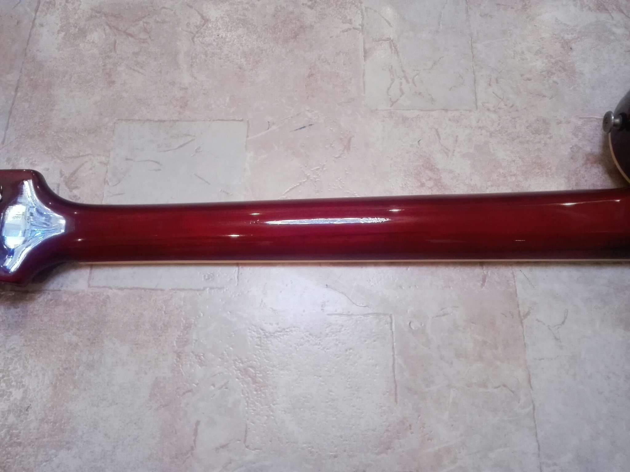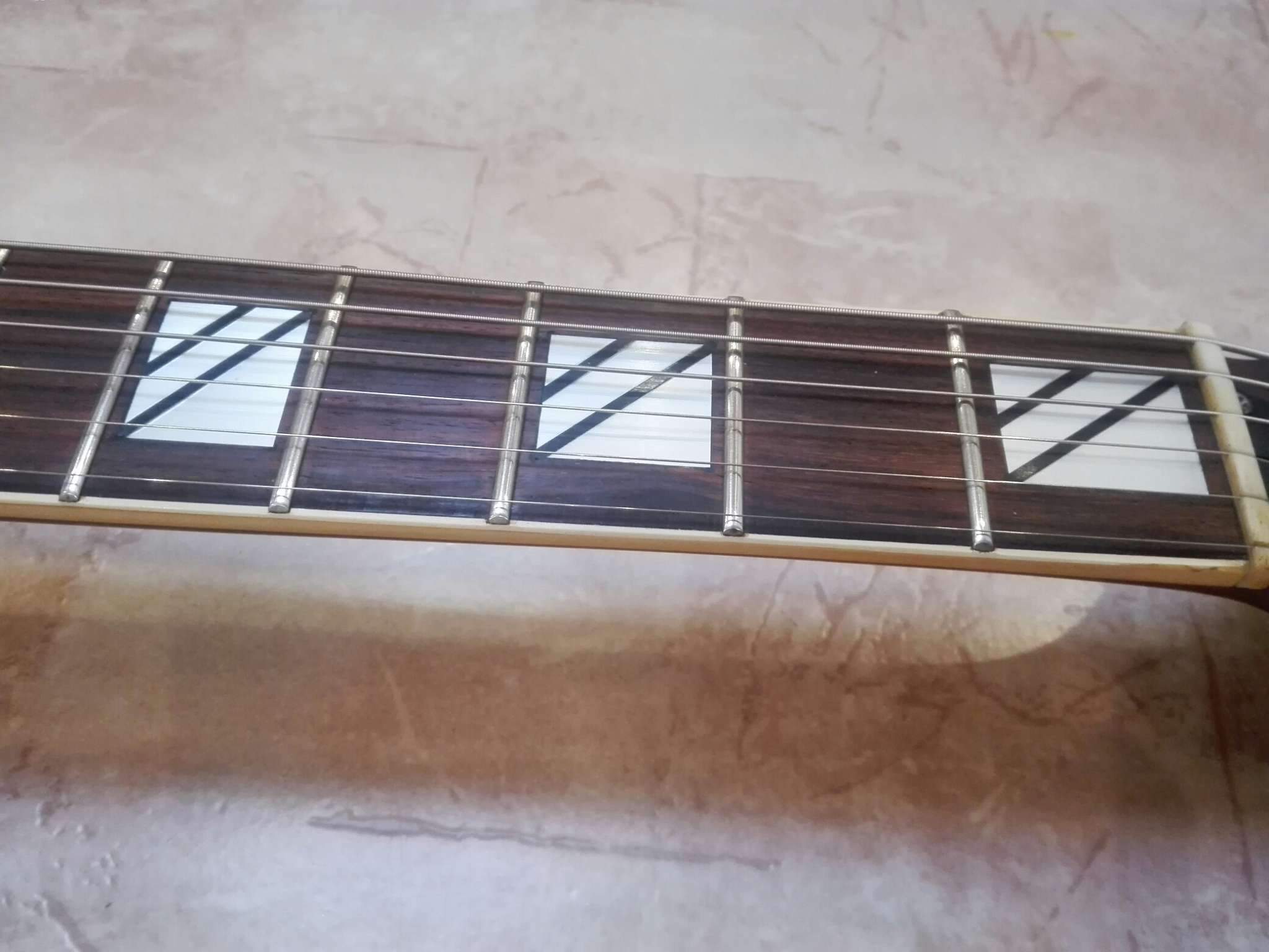 Инструмент в хорошем состоянии, имеются вмятины по лаку с обратной стороны деки и потертости на грифе. Функционально инструмент в отличном состоянии. Отшлифованы лады, фурнитура почищена.