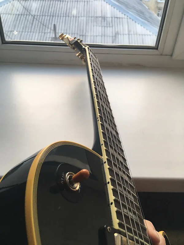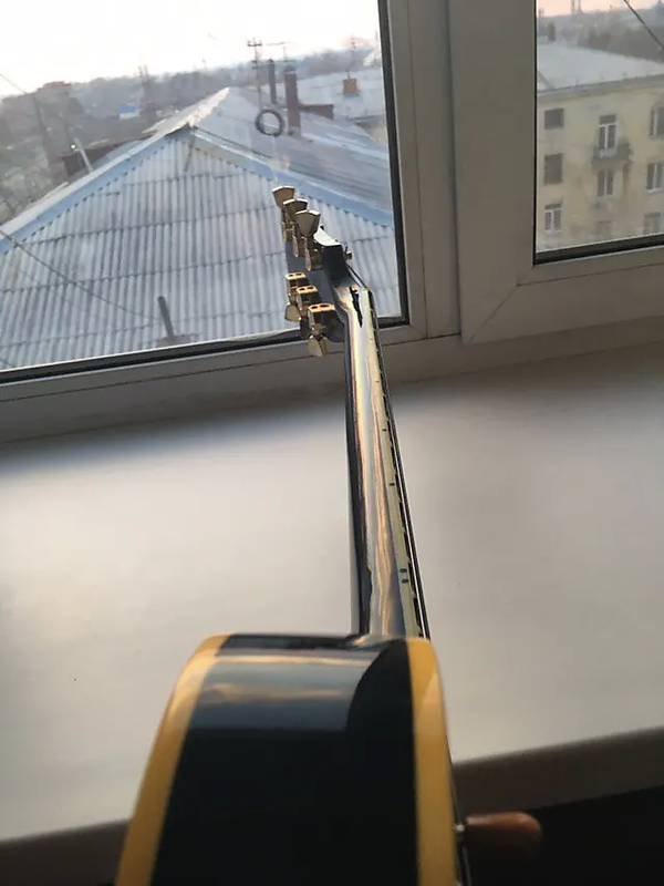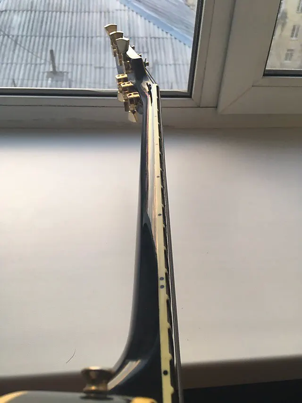На шее был мелкий скол, который залечен, пахает уже лет 6, не меньше, гриф не ведёт, строй держит отлично.