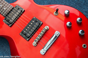 Воплощение Gibson Les Paul Special от японского бренда Burny. Инструмент получился довольно качественный, и несмотря на невысокую цену укомплектован достаточно серьёзными комплектующими - фурнитура Gotoh Japan, японские хамбакеры с уверенным выхлопом, ну и вообще качество изготовления на высоте. Инструмент полностью исправен и звучит на высоком уровне. Тембр более яркий и звонкий, чем у классического леспола, на перегрузе более рок-н-ролльный, с выхлопом чуть выше среднего. В сухом остатке - отличный японский инструмент за весьма доступный ценник.