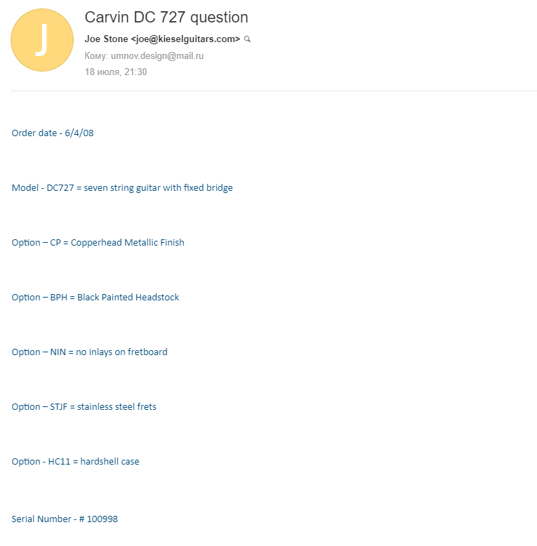Продам замечательный Американский инструмент Carvin DC 727 2008 года. Стоимость 50.000р до конца недели, причина продажи - срочно понадобились деньги.