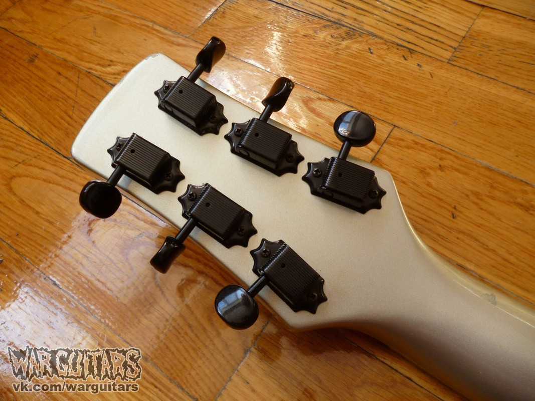 Легкий леспол - думаете, бывает такое без чемберинга? А вот и да - он перед вами! Попытка чарвела/джексона сделать ЛП без неприятных многим килограммов удалась сполна - засчет более тонкой деки вес этого экземпляра всего порядка 3-3.5 килограмм, очень легкая и удобная гитара. Мензура лесполовская, гриф вклеенный и куда тоньше обычного лесполовского (разумеется), с большим радиусом накладки; лады в норме, все ровное и работает абсолютно так, как положено. Японские звучки - звучат. Косметически есть парочка небольших недочетов, технически - бомба!