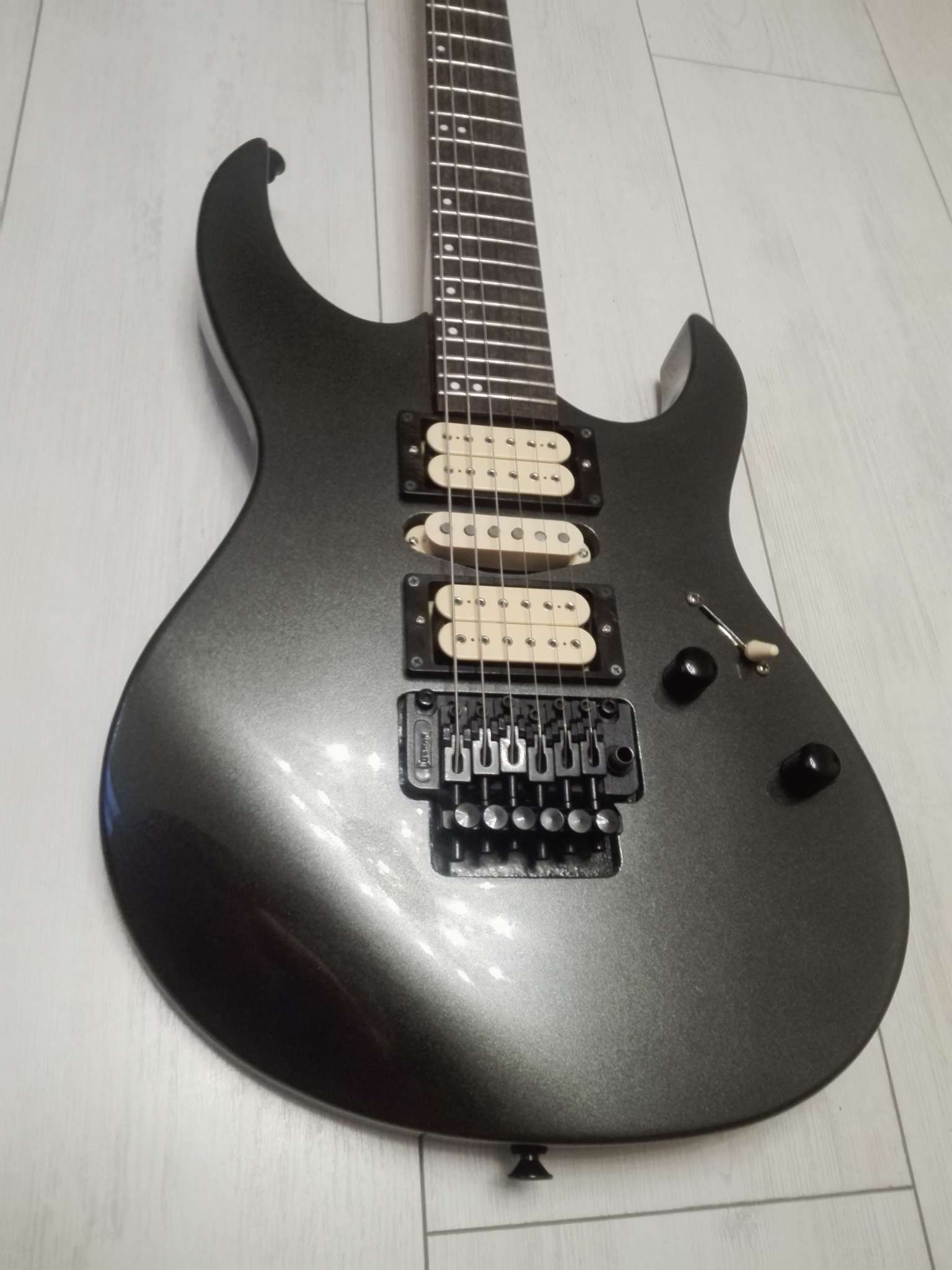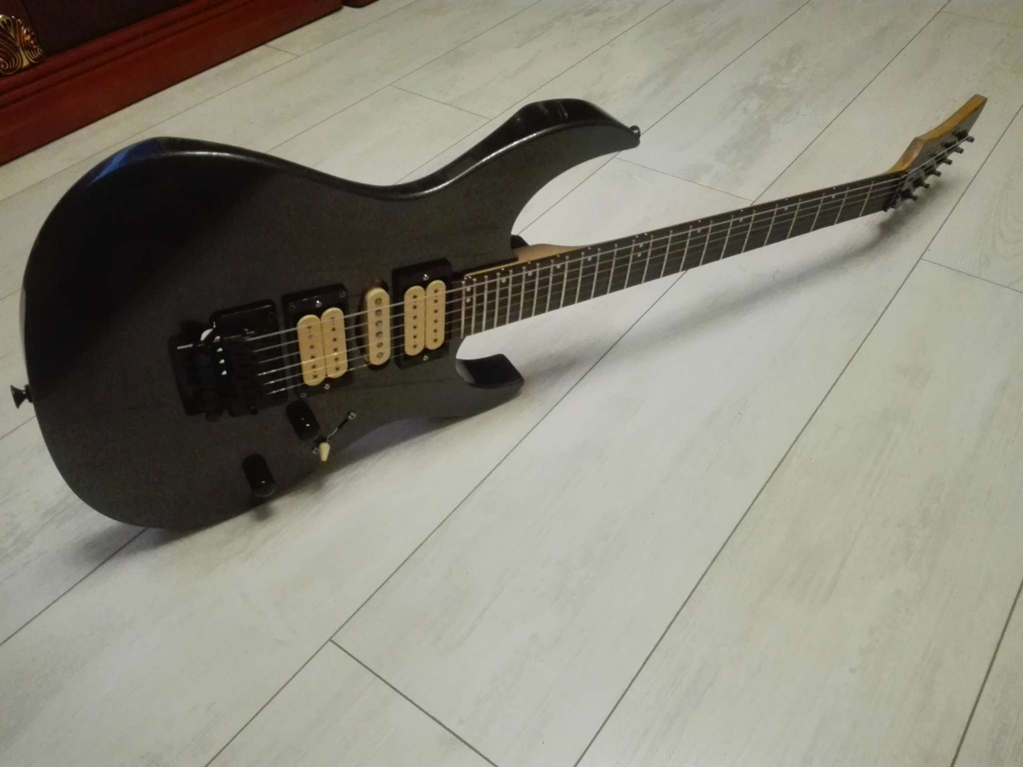 Данный экземпляр прокачен сетом звучков димарзио, нек и бридж- супердистошн, мидл -dp-217, стоимость новых звучков , около 23 тысяч рублей. Установлены потенциометры CTS USA, Переключатель American Standart (CRL). Во 2 и 4 положении переключателя звучков меняется фаза хамбакеров. Очень разноплановое звучание инструмента позволяет использовать его в разных стилях.