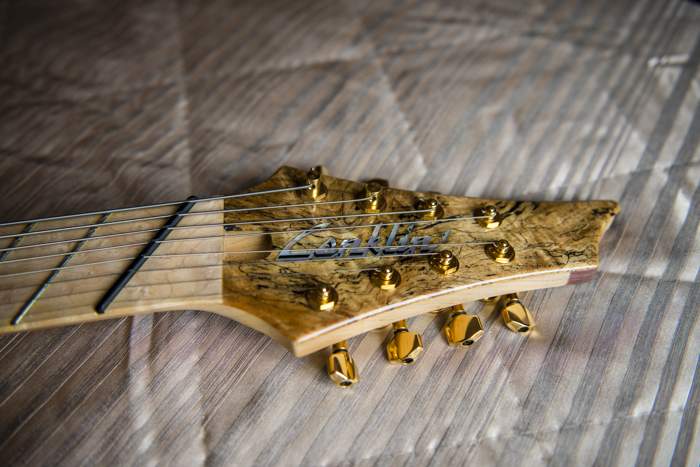 Headstock Cap: Spalted Maple with Mother-of-Pearl Logo Inlay
