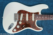 Отличный японский стратокастер, производства знаменитой фабрики Fujigen. Классический стратокастер, избавившийся от всех конструктивных недоработок оригинального прообраза. Анкер регулируется со стороны головы грифа, пятка грифа сглажена в стиле Fender Deluxe для более удобного доступа к высоким ладам. Рабочая поверхность грифа покрыта матовым лаком. Circle Fretting System (C.F.S.) - запатентованная Fujigen система установки ладов с легким радиусом, обеспечивает более чистый строй. Звукосниматели дают яркий, классический стеклянный звук стратокастера, более глубокий в нековой позиции и звонкий фанковый в бриджевой. Состояние отличное. Гитара отстроена для комфортной игры, струны низко, играть удобно.