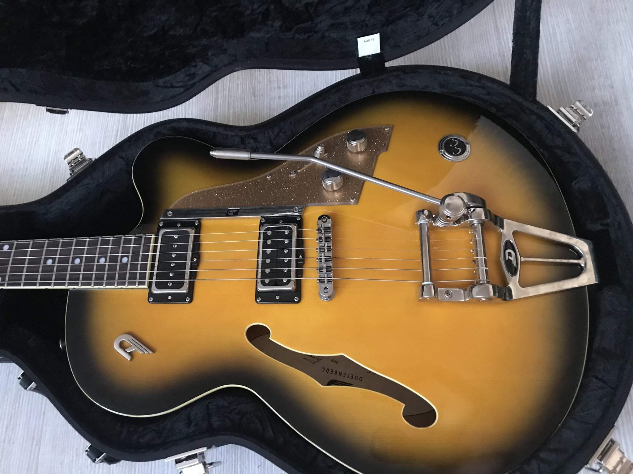 Продам полуакустику DUESENBERG CARL CARLTON, цвет 2 Tone Sunburst, все родное, только сменил бридж на роликовый ABM 2400c-RO Chrome. Родной кейс. Пересыл есть. Цена 130000 р.