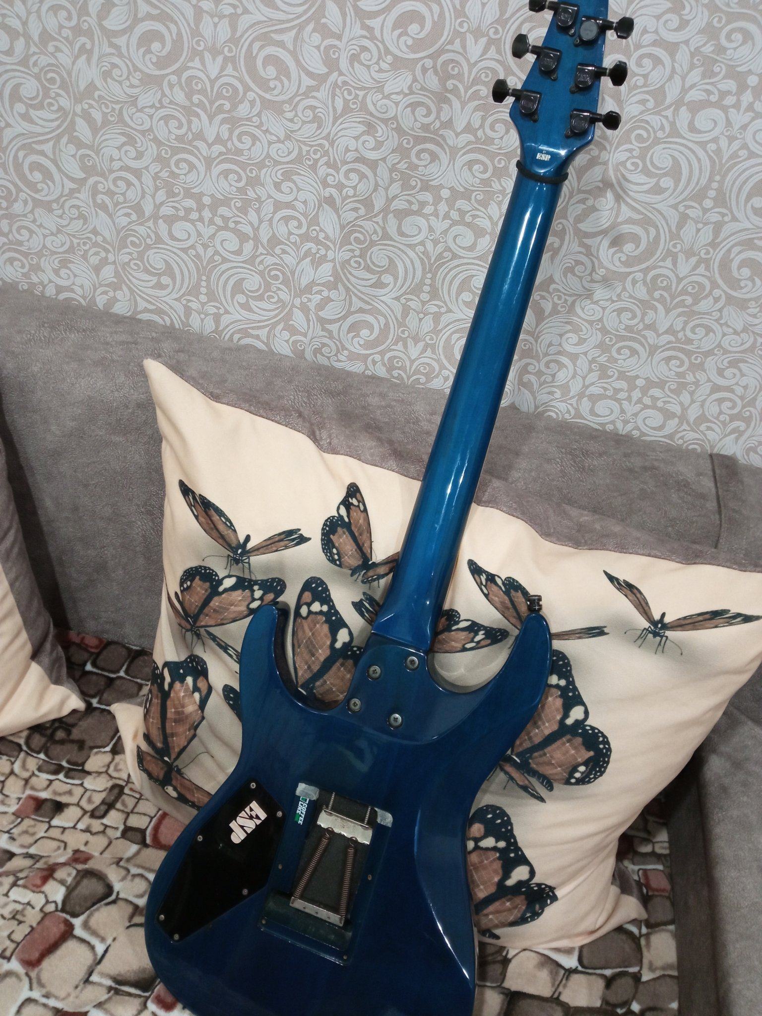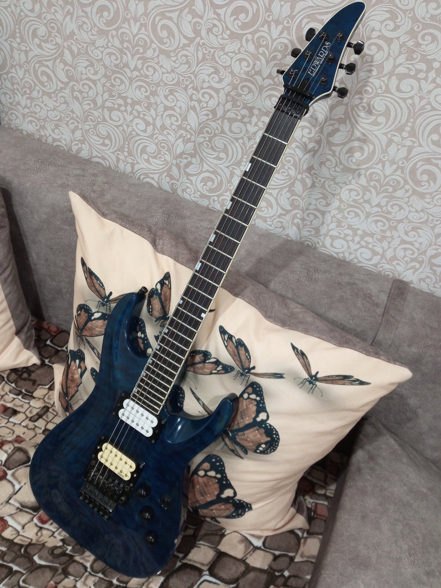 Гриф клён три куска, палисандр, датчики Фокин волкано, димарзио Нэк, 8.5ком какой не понятно, оригинальный флойд Роуз, топ лок Шаллер,
