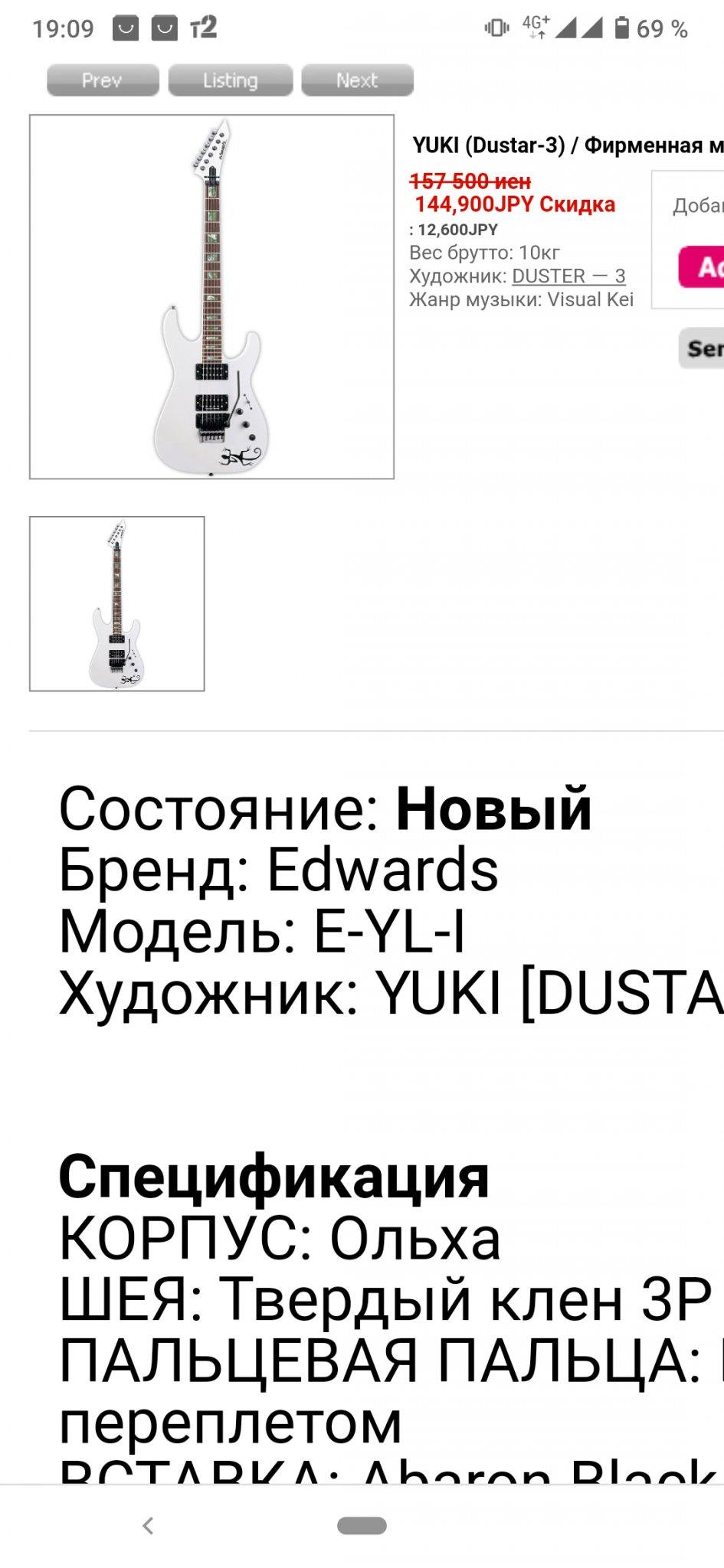 Подписная гитара Японского гитариста Yuki из Dustar-3.