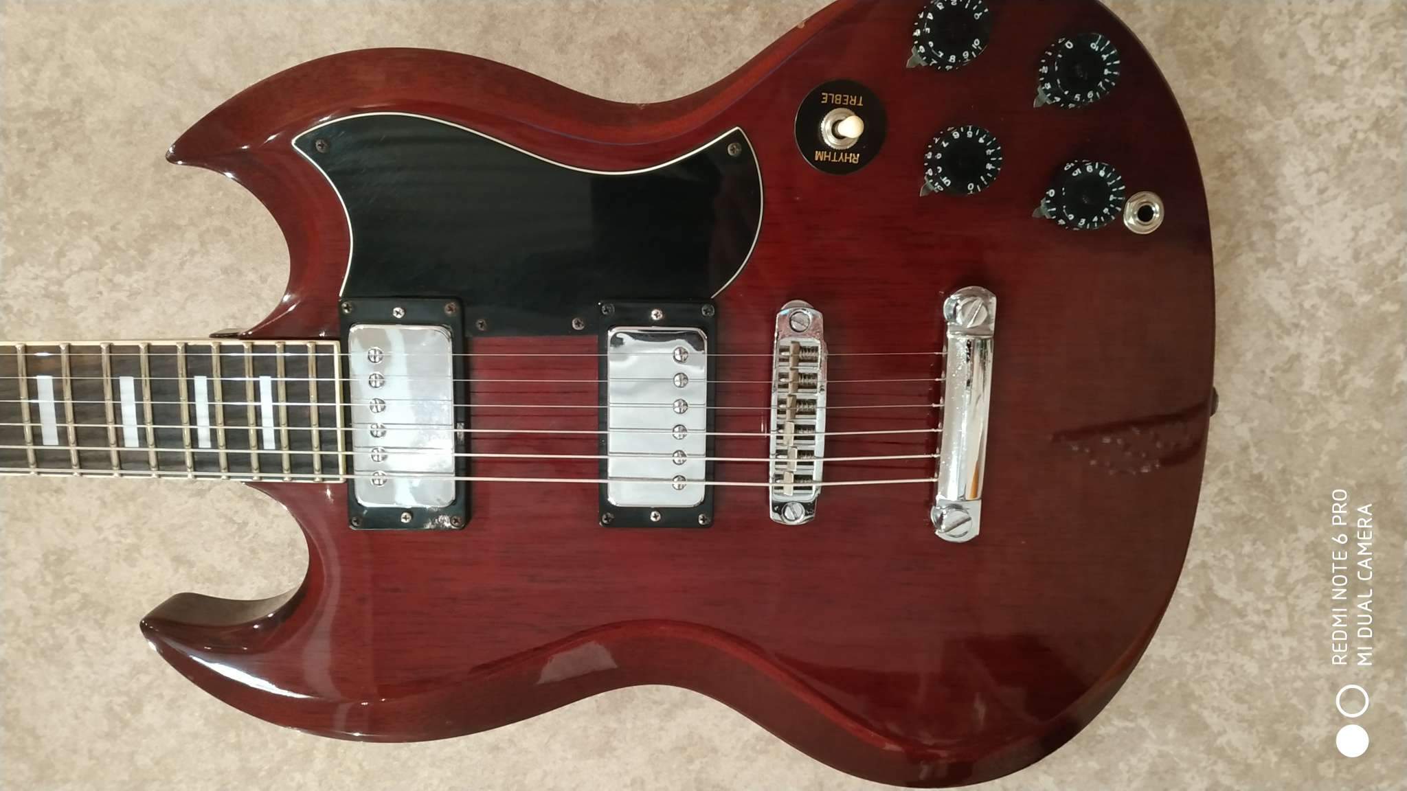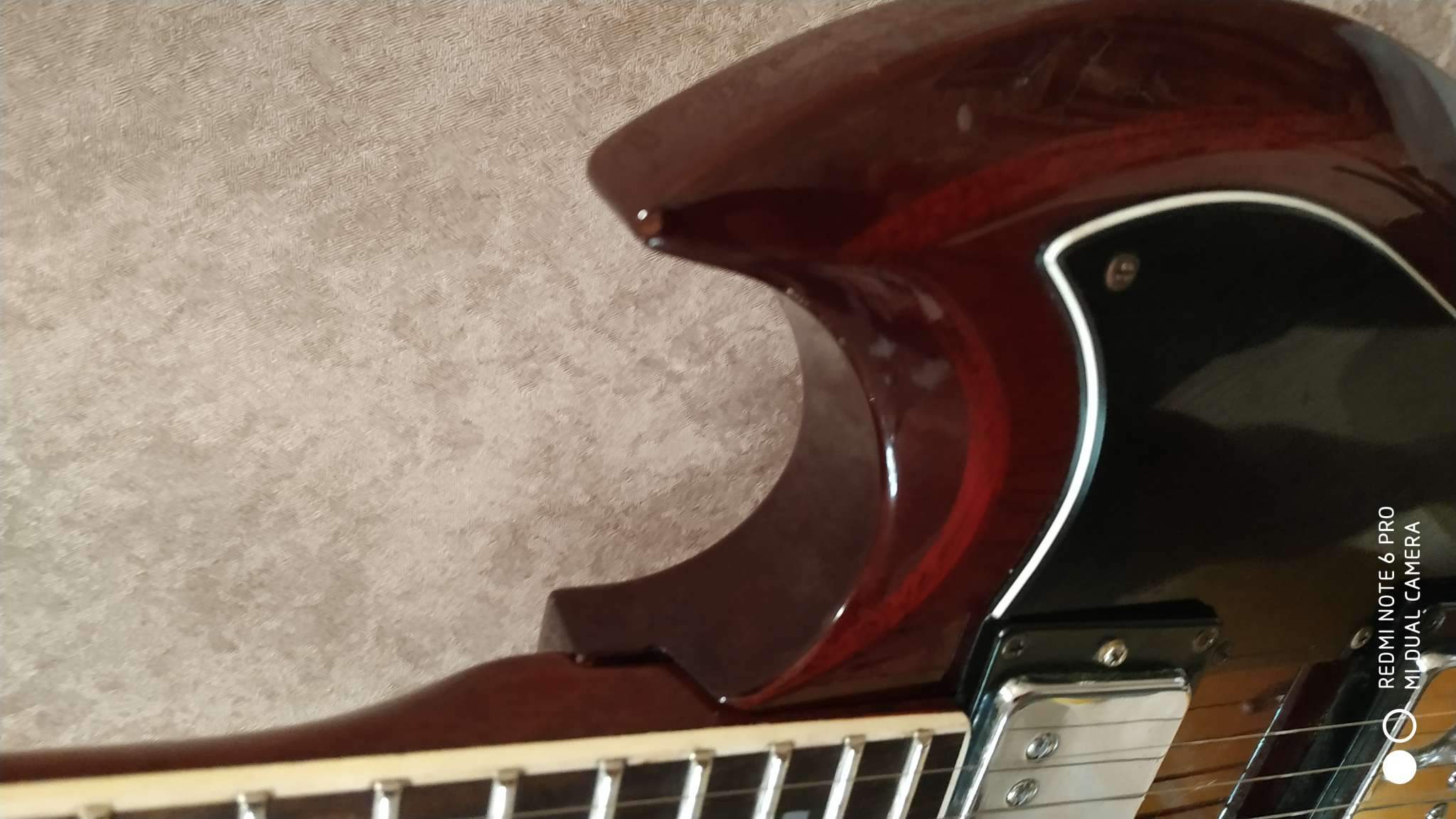 Установлены новые лады, по корпусу присутствуют сколы лака.