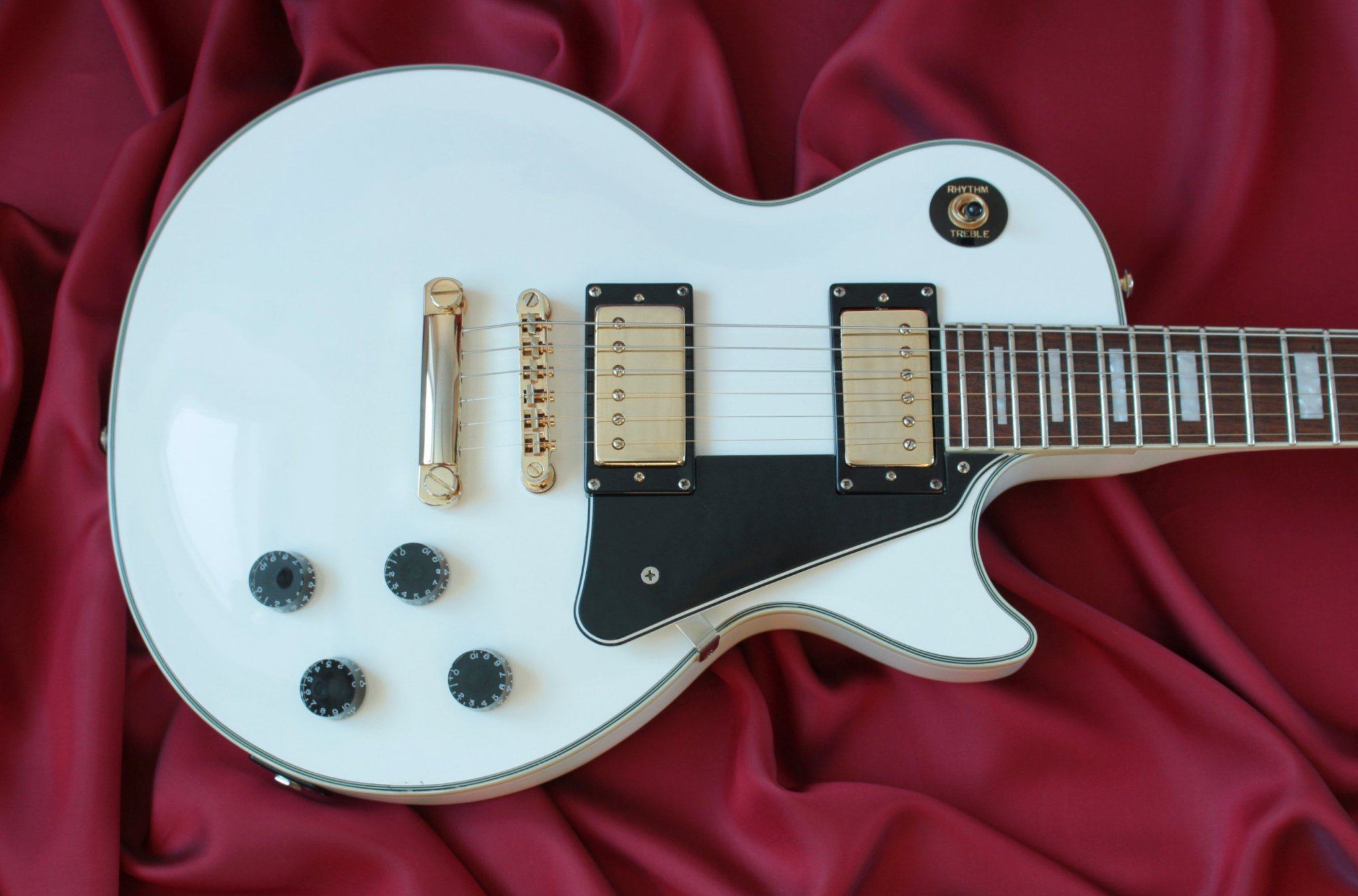 Это образец раннего Корейского производства, очень удачные серии, по качеству идущие после Японских Епифонов. Практически полноценный Гибсон, но за доступные деньги. Всё что продаётся в магазинах в последние годы по этой модели это Китай. В частности, современная модель Epiphone Les Paul Custom Китайского производства, последний раз в Музторге продавалась по цене 99 т.р.