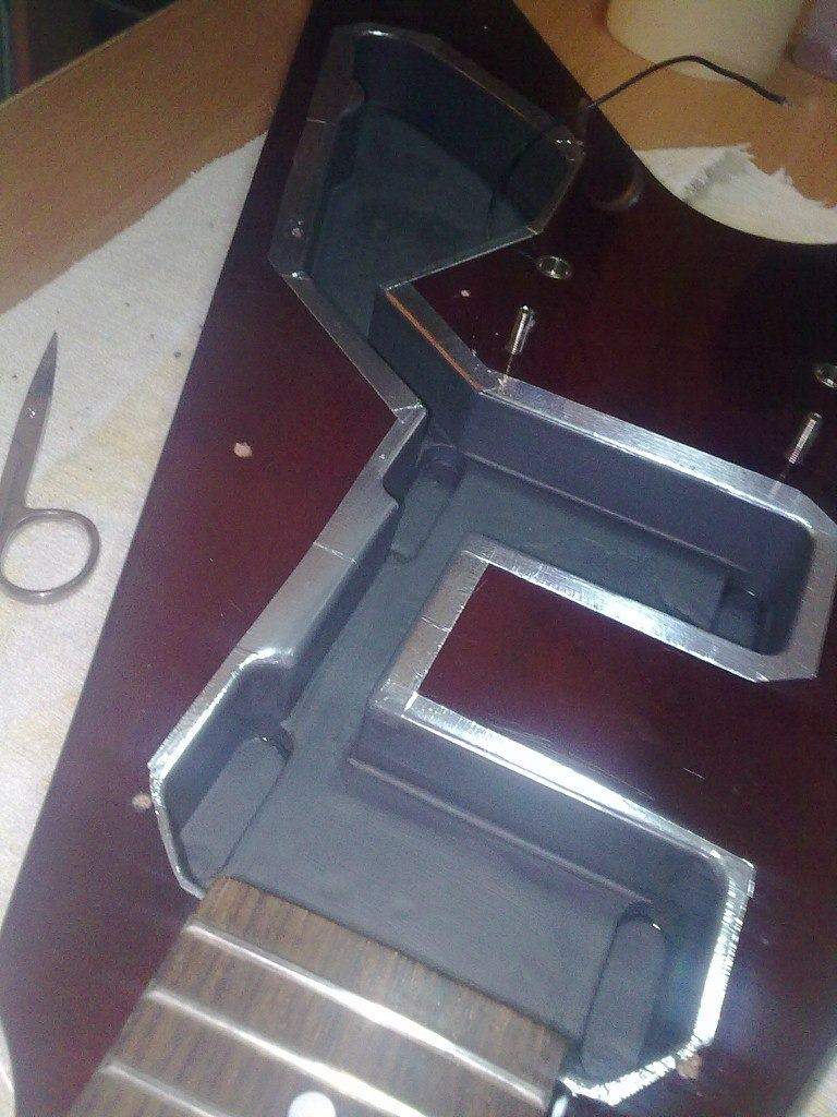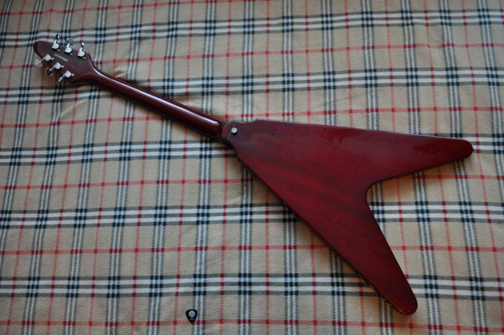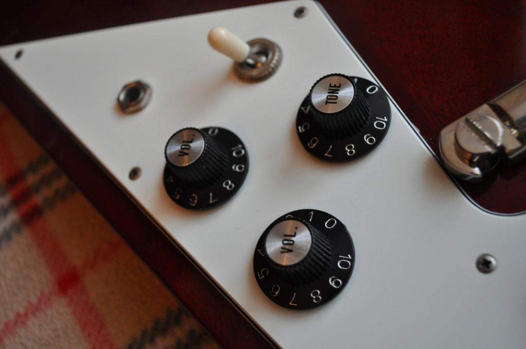 Теперь об особенностях, не стану трепать, мол это тот же Гибсон только дешевле. Ни в коем случае. Если Гибсон это американский бородатый мужик, то это стройная луноликая японка. Положительным отличием этой гитары от ее американского собрата является ее вес, это легчайшая гитара из всех, что я держал когда-либо. Достигается это при помощи некоторой конструктивной особенности, которую внимательный гитареро да заметит на фото. Описывать звук наивкуснейшими метафорами, думаю не стоит, скажу лишь то, что он действительно на уровне, к тому же различные комбинации положения трехпозиционника и регуляторов тембра и громкости позволяют вырулить достаточно широкий спектр звучания, что говорит о том, что как бы потцы и схема в целом напаяна не по /уйне, как в тех же Эпифонах. Лады, в общем-то, в поряде. Сам гриф весьма удобен и приятен, фурнитура в норме. Внутренние полости профессионально экранированы с использованием графита и алюминиевого скотча, с электроникой также никаких проблем.