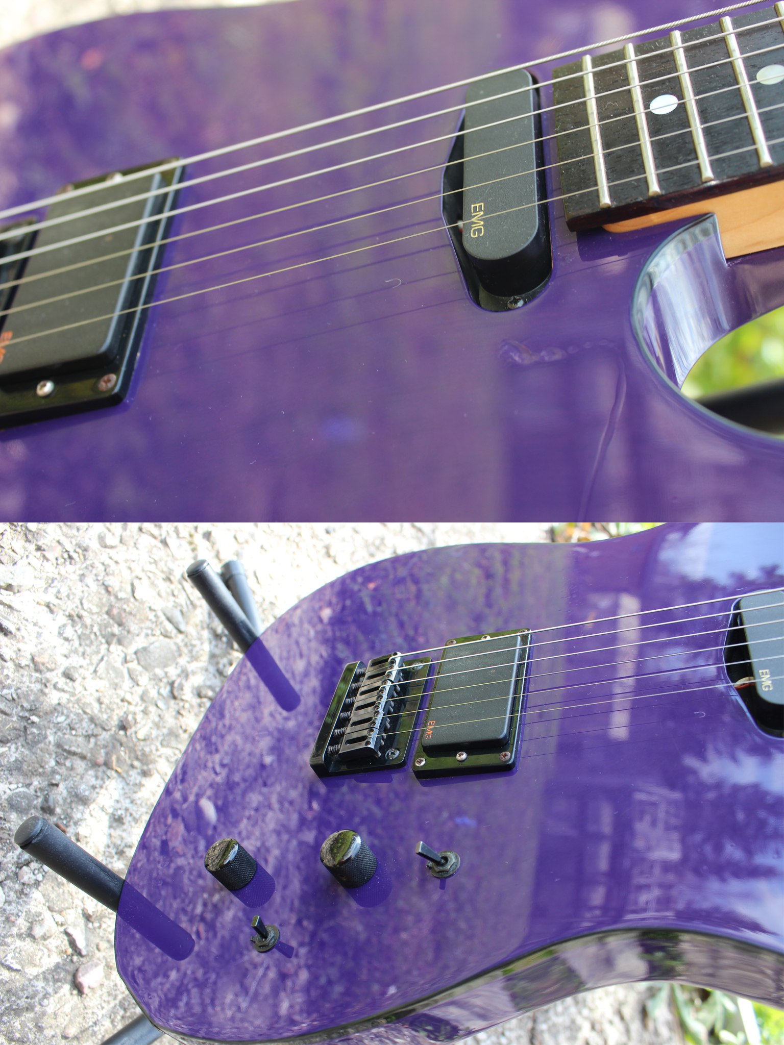 Когда любишь телекастеры, гитары Jackson, порубить митальчик утром, а вечером потянуть бенды аки Гилмор, а еще любишь яркие цвета, то вот он, твой выбор: ESP Telly. Год выпуска - около 95-го, дерево - скорее всего ольха, гриф из трех кусов, клен, 22 лада, накладка из темного палисандра. Радиус накладки (как выяснилось) 7.25 - 8 дюймов. Распайка на маленький 3-позиционный переключатель, громкость, тон и отсечку. Звукосниматели EMG 89 и SA. Великолепно звучик как на перегрузе, так и на чистом. Очень универсальная гитара в красивом цвете. Есть небольшие недочеты по лкп. Гриф очень гладкий, сделан удобнее, чем на Jackson'е! Чехол есть.