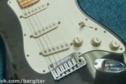 Сегодня в продаже Стратокастер из Стратокастеров — Американ делюкс, высшая точка эволюции, не считая кастом шопа от Фендер. Итак, что мы имеем: профиль грифа Modern C, не толстый и не тонкий, а вот прям ухватистый как надо, в то же время не мешающий "поливать"; ольховый корпус в редком цвете Montego Black со сглаженной пяткой грифа; двухопорное тремоло, более стабильное, нежели шестиболтовая версия, плюс литые сёдла, которые не царапают руку; звукосниматели Hot Noiseless (в оригинале должна была стоять схема с Samarium Cobalt Noiseless и S-1, но предыдущий хозяин поменял схему), позволяющие "навернуть мяса" на синглах; ну и локовые колки. Мы получаем супер-комфортный для игры инструмент с внешним видом и ощущениями приближенными к винтажным. Звучит инструмент просто шикарно - яркость и панч классических синглов, без раздражающего синглового фона. Инструмент прекрасен и на чистом звуке, и на перегруженном. Да и состояние очень хорошее. Одним словом бери, да играй хоть всю жизнь.