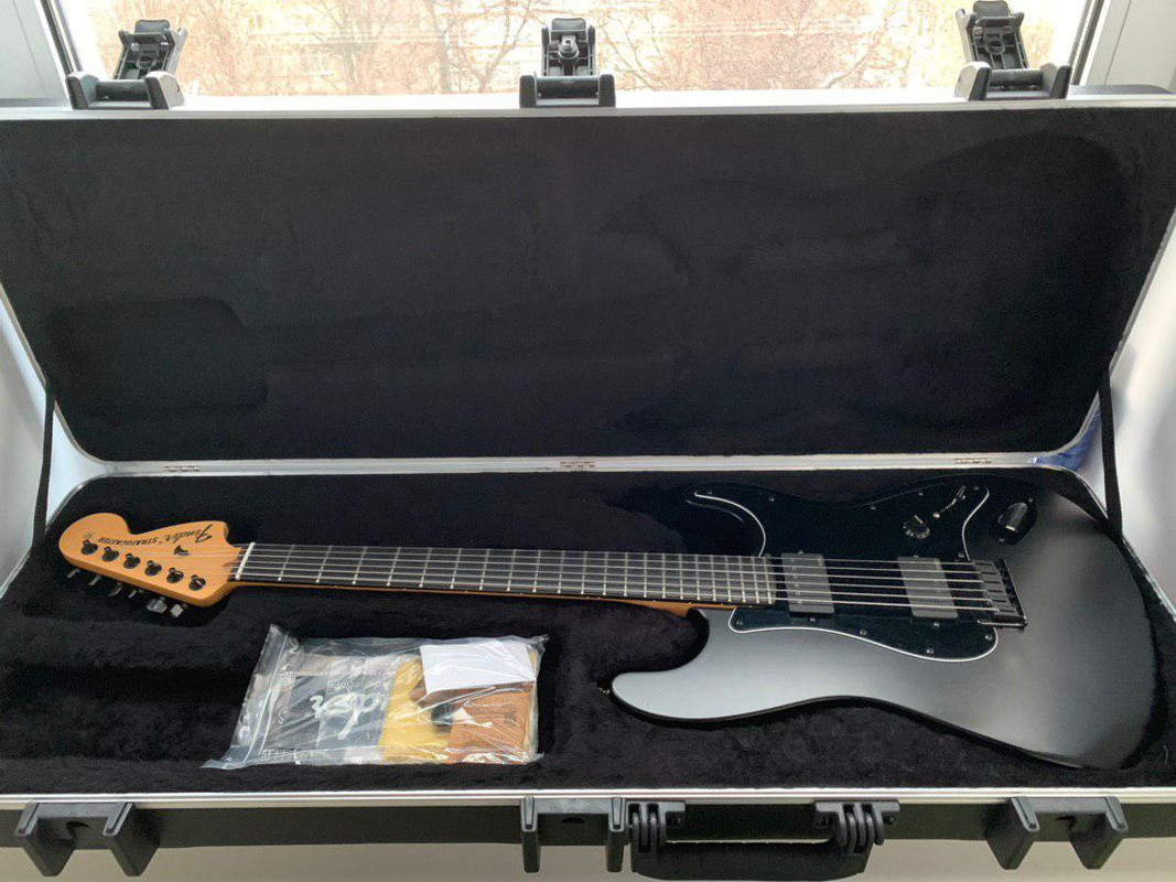 большая стратовская голова из 70ых, черный матовый корпус из красного дерева и фиксированный бридж.