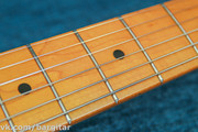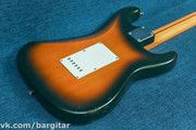 Данный инструмент отправляет нас в самые "корни" эпохи стратокастеров, а именно - в 57-й год. В этом стратокастере с японской тщательностью воспроизведены все нюансы винтажного страта - более округлый профиль грифа по сравнению с современностью, винтажные колки, лады, тремоло, пикгард о восьми болтах, анкер с обратной стороны грифа - в общем, настоящее путешествие на машине времени в прошлое. Звучит инструмент очень и очень характерно - мощно, напористо, ярко. Хотя липу и принято считать ватным и низастым деревом - тембр у страта очень острый и хулиганистый, многое зависит от датчиков, выборки дерева и сушки. Думаю, даже Хендрикс, поиграв на таком страте, однозначно бы подтвердил - страт "тот самый", образца 1957 года. Так или иначе - инструмент нужно слушать, в умелых руках палитра звучания просто поражает!