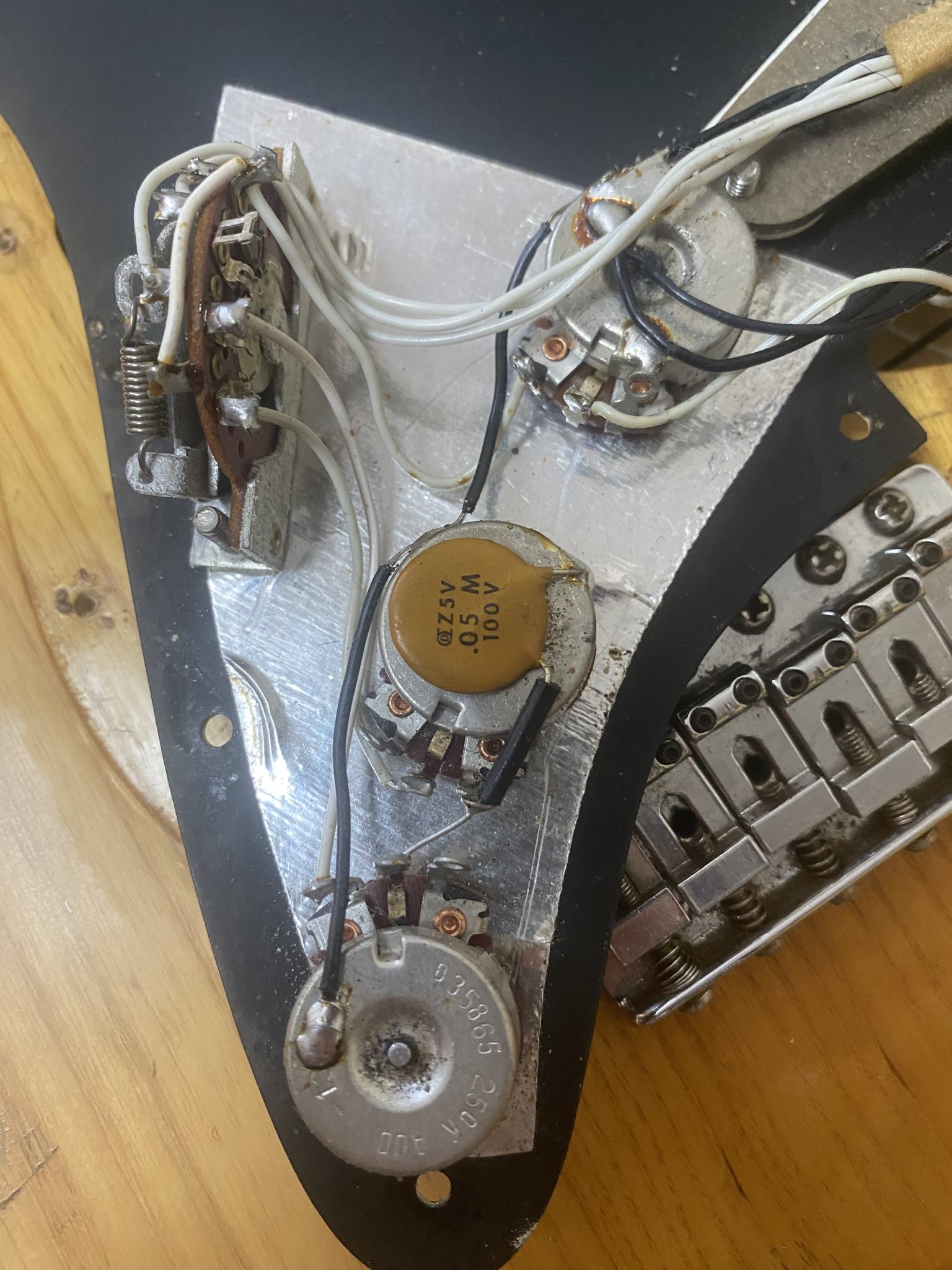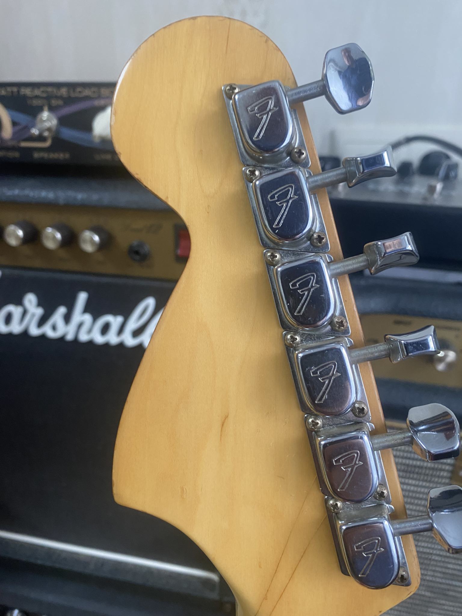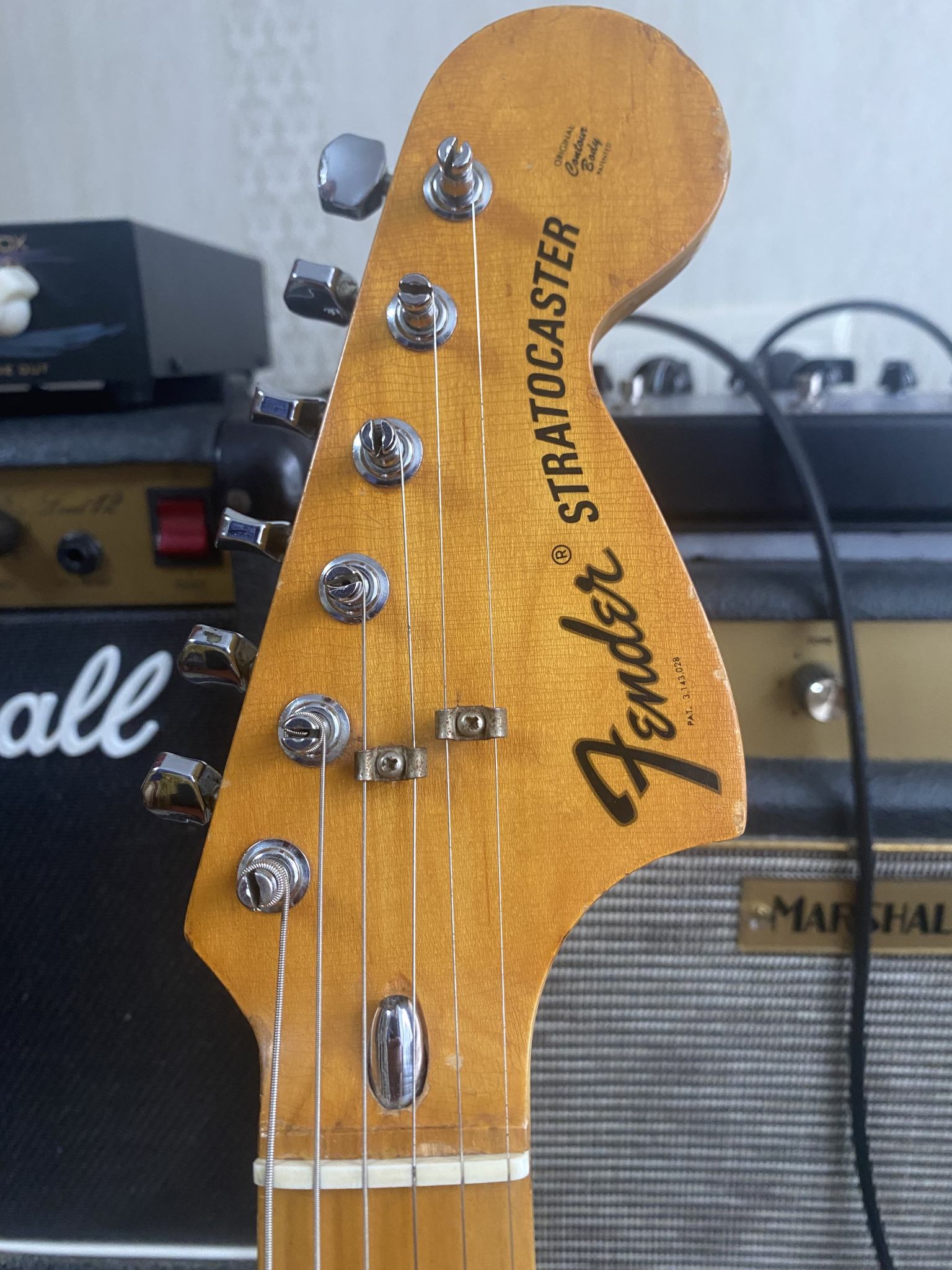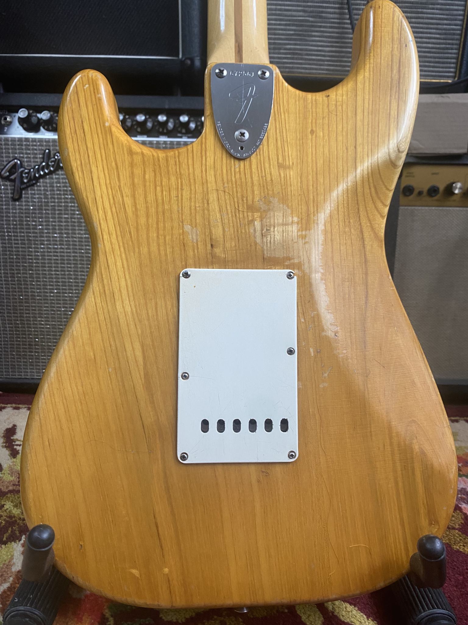 На продаже великолепный инструмент из личной коллекции - Fender Stratocaster 1975 года, в отличном рабочем состоянии. Всё родное - звукосниматели, электроника, фурнитура, 3-х позиционный переключатель. Лады Jescar, ставил Виктор Жук, они в отличном состоянии. Покрытие - очень тонкая нитра. Несмотря на то, что эта загорелая красавица разменяла шестой десяток, она легко даст фору любой более молодой сопернице. Звук просто бомба! И в лампу и в транзистор, и на чистом и на перегрузе (особенно на перегрузе), и с педалями и без, звук - эталон. Без преувеличения - уникальный инструмент, никакие "кастом шопы" и рядом не валяются. Цена - 250000руб. Без обменов.