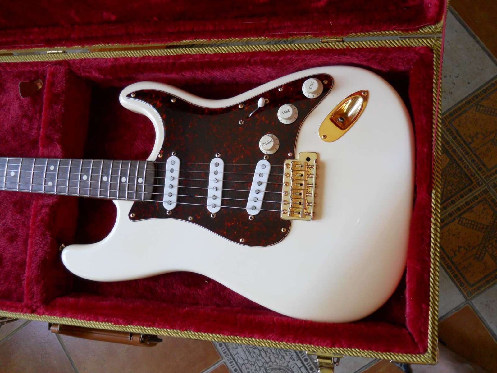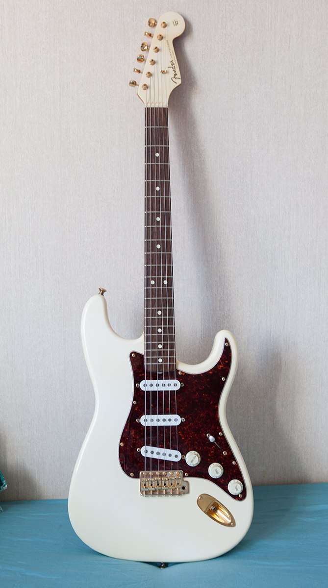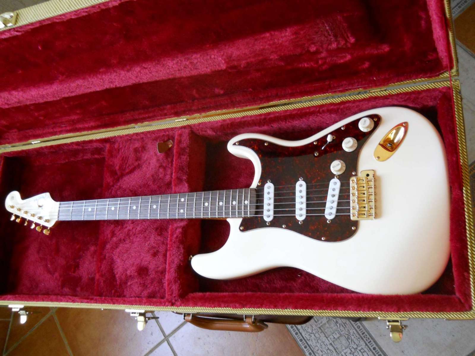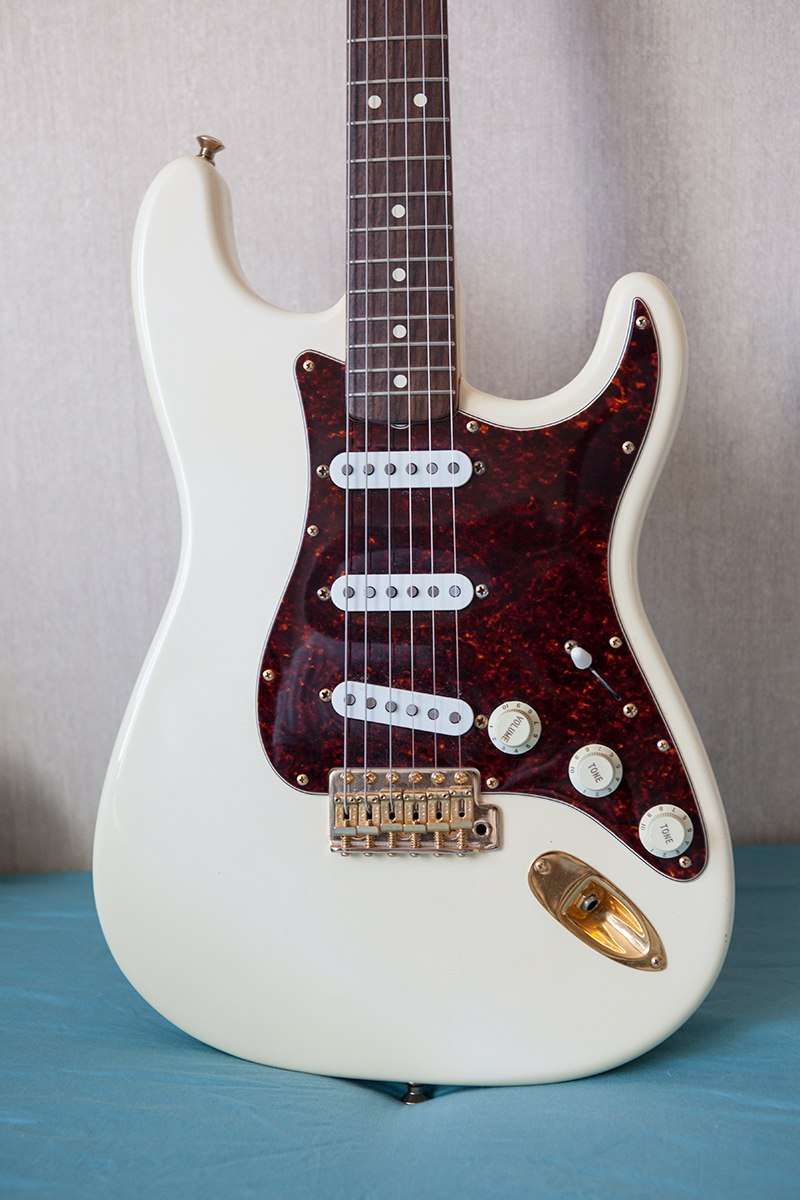 Выставляю на продажу прекрасный экземляр раннего кастом шопа от Fender. 1991 года. Настоящий породистый американец 25-ти летней выдержки! Хорошо просушенная дека имеет отличный резонанс. Очень плотный палиссандр на грифе дает максимально четкую атаку. Звук классический фендеровский. Яркий, мощный с характерным стеклом и высоким уровнем сигнала. Расписывать нет смысла. Гитара не дешёвая, для профи, Кто в теме тот знает. Это была золотая эра производства Custom Shop, под руководством легендарного John Page. Судя по клейму на деке, конкретно декой этой гитары, занимался известный мастер, Oscar Pallares, а на грифе стоит клеймо, не мене известного мастера, Gafstelum!!!