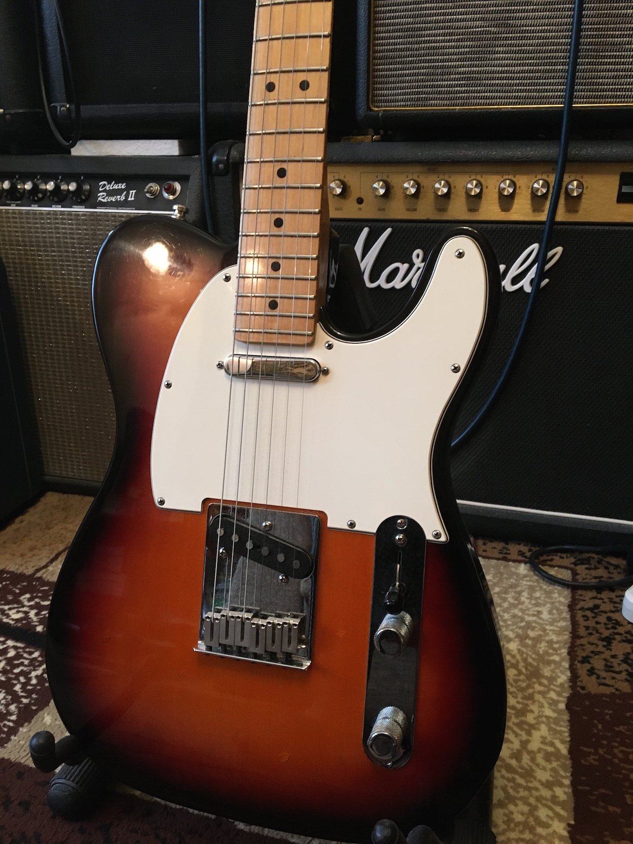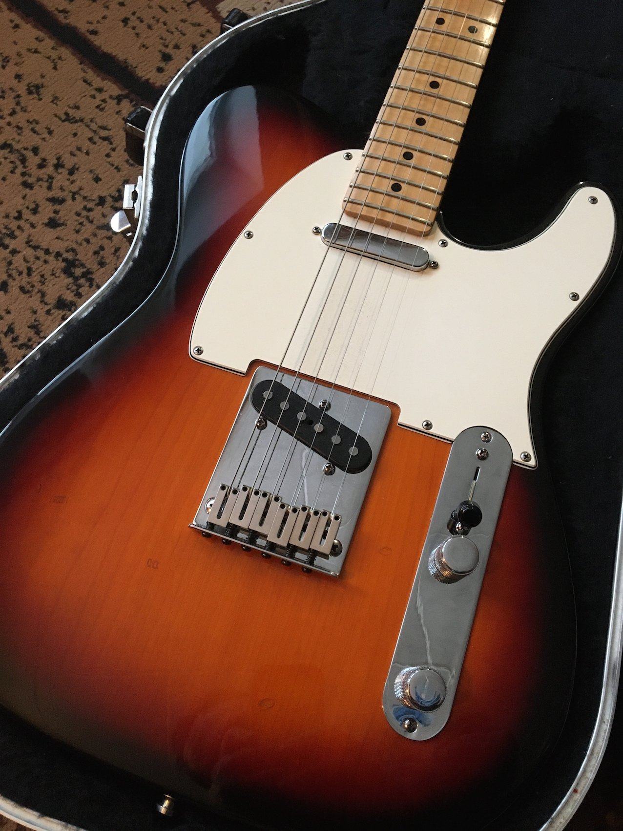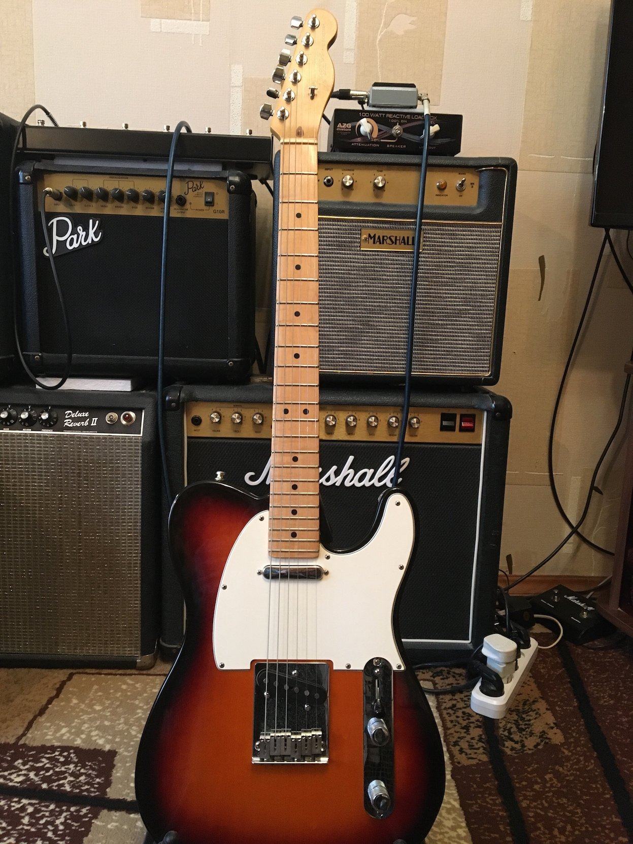 Выставляю на продажу один из лучших и любимых своих телекастеров, что у меня были, а было их не мало. Этот - лучший, и по звуку, и по внешним данным. Гитара в отличном состоянии, косметика на 5, пара мелких вмятинок и коцок не в счёт. Корпус - ольха, отзывчивая и звонкая, в очень красивом санбёрсте, гриф - клён, один кусок, лады, анкер, колки, электроника - всё в отличном рабочем состоянии. Родные звукосниматели заменены на классные Pure Vintage '64 Tele Pickup Set, родные цинковые сёдла заменены на латунные Kluson, родной керамический конденсатор в тембрблоке заменён на винтажный американский бумажно/маслянный. Звук - бомба, играешь, и неохота гитару из рук выпускать, а с таким сустейном я телеков вообще не слышал. Гитара великолепно звучит и на чистом, и с перегрузом, будет время - запишу видос. В комплекте родной кейс.
