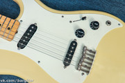 На продаже довольно редкий винтажный инструмент. Задуманный как недорогой, облегченный гибрид стратокастера и телекастера, Буллет стал некоторым усредненным собирательным образом гитар Фендер того времени. Упрощённая комбинация датчиков (два сингла, как на Мустанге), в этой конкретной гитаре была модифицирована установкой двух стековых хамбакеров DiMarzio Virtual vintage blues, что весьма расширило возможности инструмента, теперь можно зажечь не только на чистом, но и на перегруженном канале усилителя. Бриджевый тембр звонкий, яркий, настоящая ухорезка, нековый же глубокий и сочный. Состояние хорошее, особенно учитывая год выпуска инструмента. В общем, инструмент интересен не только как рабочий, но и как имиджевый, за счёт своей редкости!
