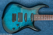 Этот инструмент представляет собой типичный суперстрат - конструкция классическая, но вместе с тем и отработаная и надежная. Инструмент оснащён и хамбакерами и синглами - достаточно распространненое решение для суперстратов - в результате чего различные комбинации звука достаточно адекватны на слух - эдакий "универсальный вариант" - при желании можно выдать хорошего мяса, не жертвуя читаемостью и тоном чистого звука. Датчики достаточно простые - но для занятий, репетиций и концертов их хватит с лихвой, они просто выполняют всё, что от них требуется. Железо также весьма неплохое , японские колки Gotoh, классическая машинка-тремоло работают также без нареканий. Кстати об удобстве: гриф здесь весьма тоньше и "скоростнее", что выгодно выделяет инструмент среди прочих собратьев по ценовому диапазону и будет нелишним не только для гитаристов-"спортсменов", но и для всех, кому профиль и толщина грифа - параметры критичные. Звук инструмента достаточно взрослый - вполне взрослые риффы и соляки звучат очень убедительно, на перегрузе присутствует хороший читаемый рык, гитара уверенно чувствует себя в миксе, но при этом не теряет универсальности на чистом звуке - саунд весьма достойный, позволяя исполнять не только злой рок и металл.