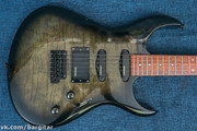 Этот инструмент представляет собой типичный суперстрат - конструкция классическая, но вместе с тем и отработаная и надежная. Инструмент оснащён и хамбакерами и синглами - достаточно распространненое решение для суперстратов - в результате чего различные комбинации звука достаточно адекватны на слух - эдакий "универсальный вариант" - при желании можно выдать хорошего мяса, не жертвуя читаемостью и тоном чистого звука. Датчики достаточно простые - но для занятий, репетиций и концертов их хватит с лихвой, они просто выполняют всё, что от них требуется. Железо также весьма неплохое , японские колки Gotoh, классическая машинка-тремоло работают также без нареканий. Кстати об удобстве: гриф здесь весьма тоньше и "скоростнее", что выгодно выделяет инструмент среди прочих собратьев по ценовому диапазону и будет нелишним не только для гитаристов-"спортсменов", но и для всех, кому профиль и толщина грифа - параметры критичные. Звук инструмента достаточно взрослый - вполне взрослые риффы и соляки звучат очень убедительно, на перегрузе присутствует хороший читаемый рык, гитара уверенно чувствует себя в миксе, но при этом не теряет универсальности на чистом звуке - саунд весьма достойный, позволяя исполнять не только злой рок и металл.
