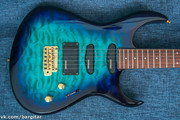 Инструмент оснащён и хамбакерами и синглами - достаточно распространненое решение для суперстратов - в результате чего различные комбинации звука достаточно адекватны на слух - эдакий "универсальный вариант" - при желании можно выдать хорошего мяса, не жертвуя читаемостью и тоном чистого звука Железо также весьма неплохое , японские колки Gotoh, классическая машинка-тремоло работают также без нареканий. Кстати об удобстве: гриф здесь весьма тоньше и "скоростнее", что выгодно выделяет инструмент среди прочих собратьев по ценовому диапазону и будет нелишним не только для гитаристов-"спортсменов", но и для всех, кому профиль и толщина грифа - параметры критичные. Звук инструмента достаточно взрослый - риффы и соляки звучат очень убедительно, на перегрузе присутствует хороший читаемый рык, гитара уверенно чувствует себя в миксе, но при этом не теряет универсальности на чистом звуке - саунд весьма достойный, позволяя исполнять не только злой рок и металл.