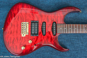 Инструмент оснащён и хамбакерами и синглами - достаточно распространненое решение для суперстратов - в результате чего различные комбинации звука достаточно адекватны на слух - эдакий "универсальный вариант" - при желании можно выдать хорошего мяса, не жертвуя читаемостью и тоном чистого звука Железо также весьма неплохое , японские колки Gotoh, классическая машинка-тремоло работают также без нареканий. Кстати об удобстве: гриф здесь весьма тоньше и "скоростнее", что выгодно выделяет инструмент среди прочих собратьев по ценовому диапазону и будет нелишним не только для гитаристов-"спортсменов", но и для всех, кому профиль и толщина грифа - параметры критичные. Звук инструмента достаточно взрослый - риффы и соляки звучат очень убедительно, на перегрузе присутствует хороший читаемый рык, гитара уверенно чувствует себя в миксе, но при этом не теряет универсальности на чистом звуке - саунд весьма достойный, позволяя исполнять не только злой рок и металл.