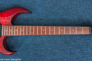 Инструмент оснащён и хамбакерами и синглами - достаточно распространненое решение для суперстратов - в результате чего различные комбинации звука достаточно адекватны на слух - эдакий "универсальный вариант" - при желании можно выдать хорошего мяса, не жертвуя читаемостью и тоном чистого звука Железо также весьма неплохое , японские колки Gotoh, классическая машинка-тремоло работают также без нареканий. Кстати об удобстве: гриф здесь весьма тоньше и "скоростнее", что выгодно выделяет инструмент среди прочих собратьев по ценовому диапазону и будет нелишним не только для гитаристов-"спортсменов", но и для всех, кому профиль и толщина грифа - параметры критичные. Звук инструмента достаточно взрослый - риффы и соляки звучат очень убедительно, на перегрузе присутствует хороший читаемый рык, гитара уверенно чувствует себя в миксе, но при этом не теряет универсальности на чистом звуке - саунд весьма достойный, позволяя исполнять не только злой рок и металл.