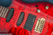 Инструмент оснащён и хамбакерами и синглами - достаточно распространненое решение для суперстратов - в результате чего различные комбинации звука достаточно адекватны на слух - эдакий "универсальный вариант" - при желании можно выдать хорошего мяса, не жертвуя читаемостью и тоном чистого звука Железо также весьма неплохое , японские колки Gotoh, классическая машинка-тремоло работают также без нареканий. Кстати об удобстве: гриф здесь весьма тоньше и "скоростнее", что выгодно выделяет инструмент среди прочих собратьев по ценовому диапазону и будет нелишним не только для гитаристов-"спортсменов", но и для всех, кому профиль и толщина грифа - параметры критичные. Звук инструмента достаточно взрослый - риффы и соляки звучат очень убедительно, на перегрузе присутствует хороший читаемый рык, гитара уверенно чувствует себя в миксе, но при этом не теряет универсальности на чистом звуке - саунд весьма достойный, позволяя исполнять не только злой рок и металл.