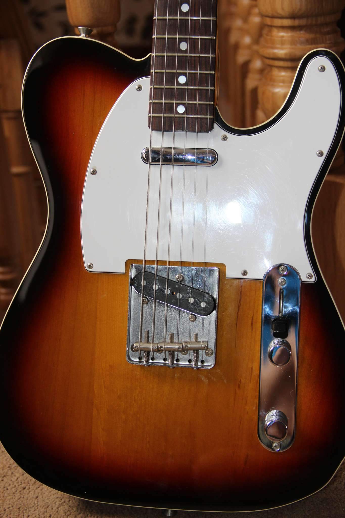Телекастер.Предположительно RTЕ 60 или 80. Год где-то 88-90.Тушка вообще общаяя с Фендер ТL62 - один завод был.Лады и гриф ,как с завода. Состояние супер пупер!Бидинг по краям ! Вмятинка на лаке одна единственная. Цена 15800.р. Япония.Есть чехол!