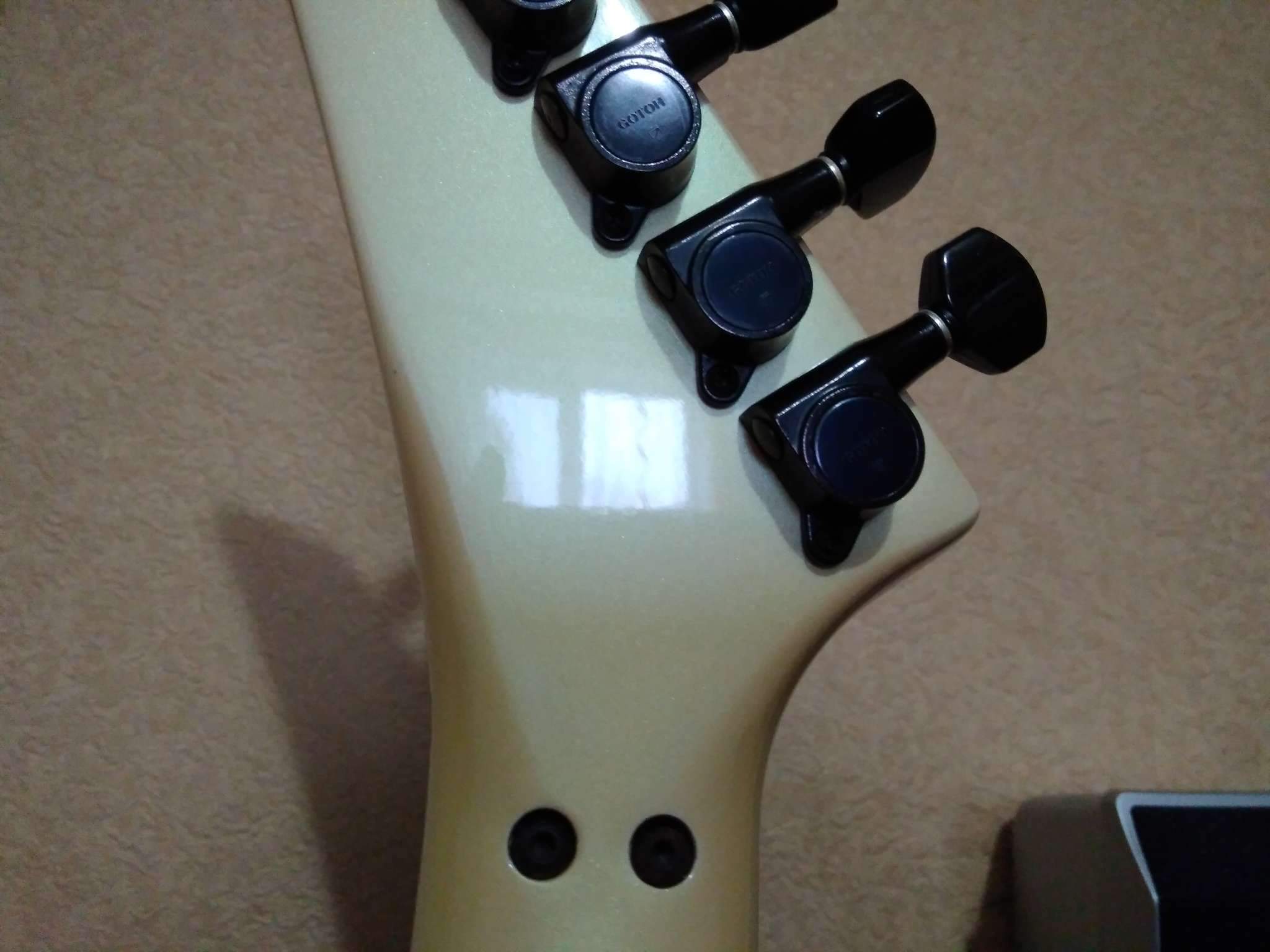 P.S.: От продавца инструмент достался без чашек и болтов топлока. Пришлось сделать самому (см. фото головы грифа), вроде получилось неплохо. Также в комплекте не родной рычаг флойда, но ничего криминального, со своими задачами полностью справляется.