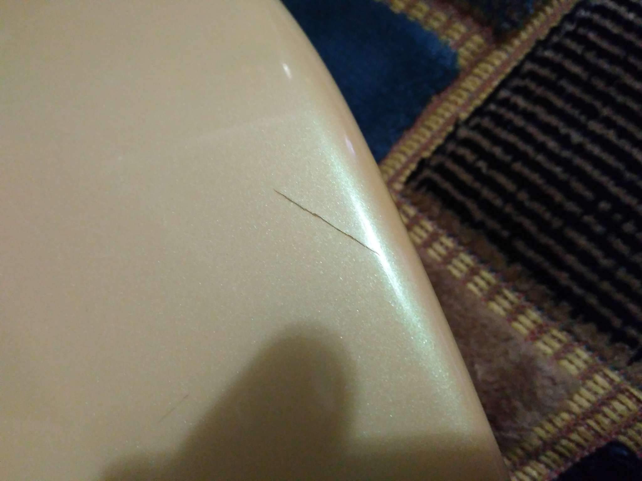 На борту имеются небольшие царапины (см. фото) и потёртости. К фурнитуре претензий, также, не выявлено, свои задачи выполняет.
