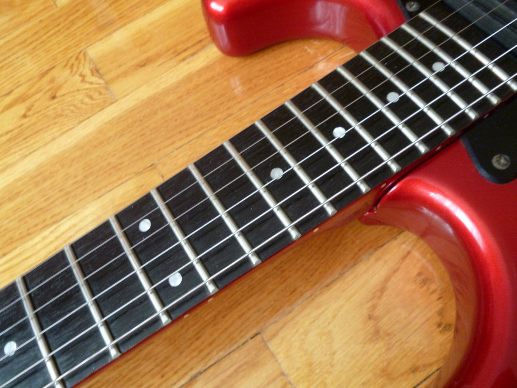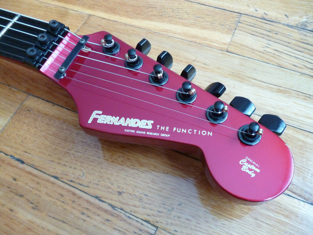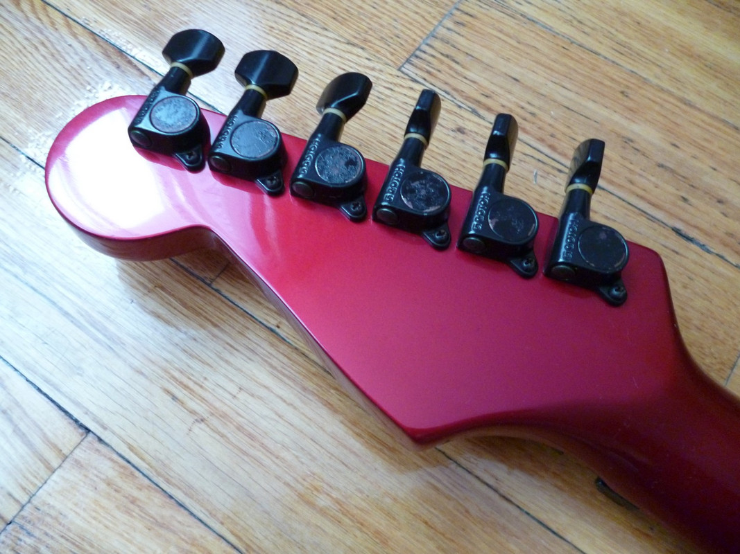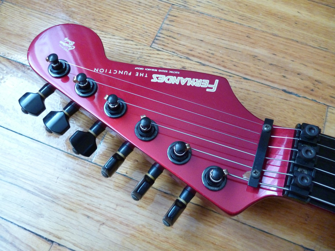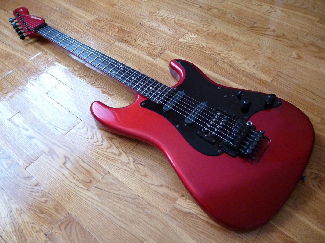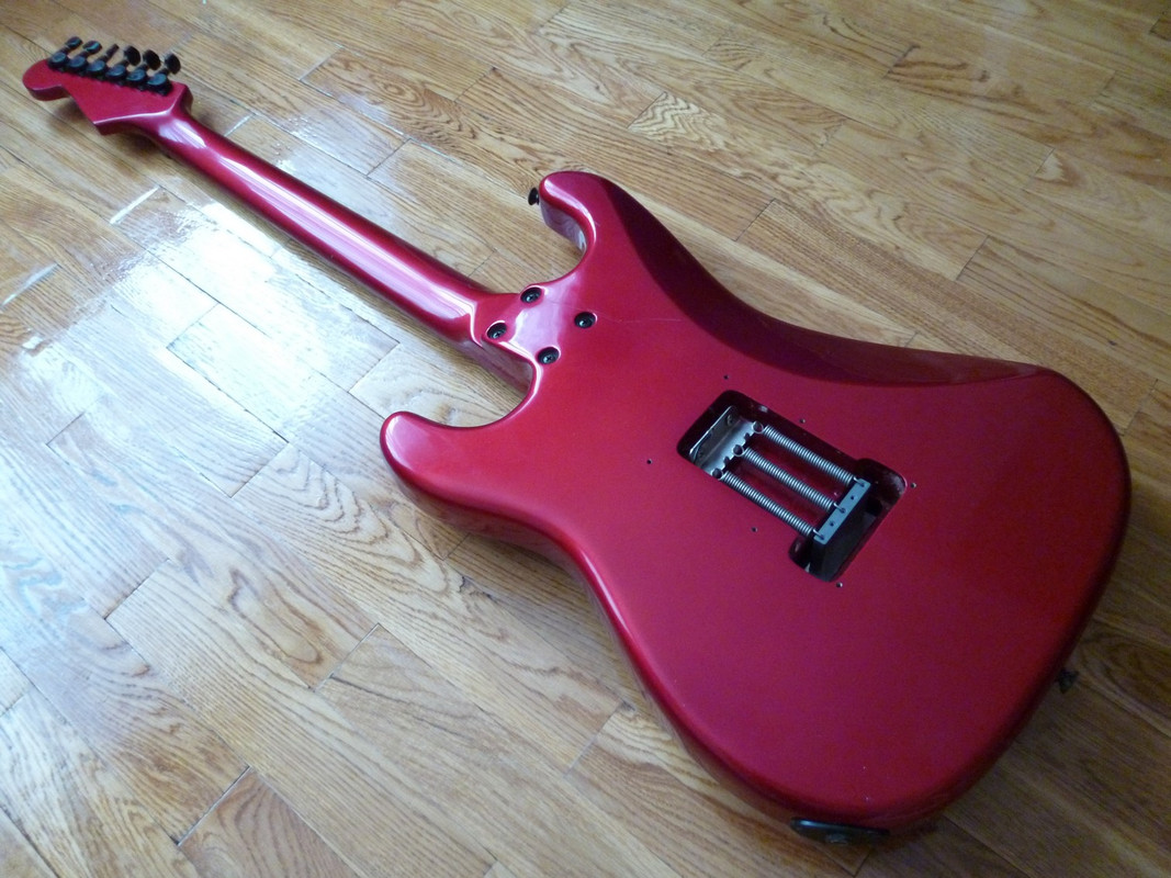 Супер(во всех отношениях)страт от дяди-Фернандеса - 65 серия в год своего расцвета и апогея. Объясним почему - дело в том, что к 90-му году ушлые японцы поняли, что до совершенства их палкам не хватает только двух моментов. Первый - фрезеровка под флойд, а второй - исключение противной шредерам стратопятки грифа. И, надо отдать должное узкоглазым, оба момента они с блеском преодолели, хоть и только в последний год выпуска данной модели. Собственно, перед вами особь именно описанного периода, что довольно редко, приятно и полезно. Помимо всего прочего, обладает интересным глубоким цветом Candy Apple Red и прекрасным косметическим/функциональным состоянием. Можно сказать, альтернатив за эти деньги на рынке не имеет вообще.