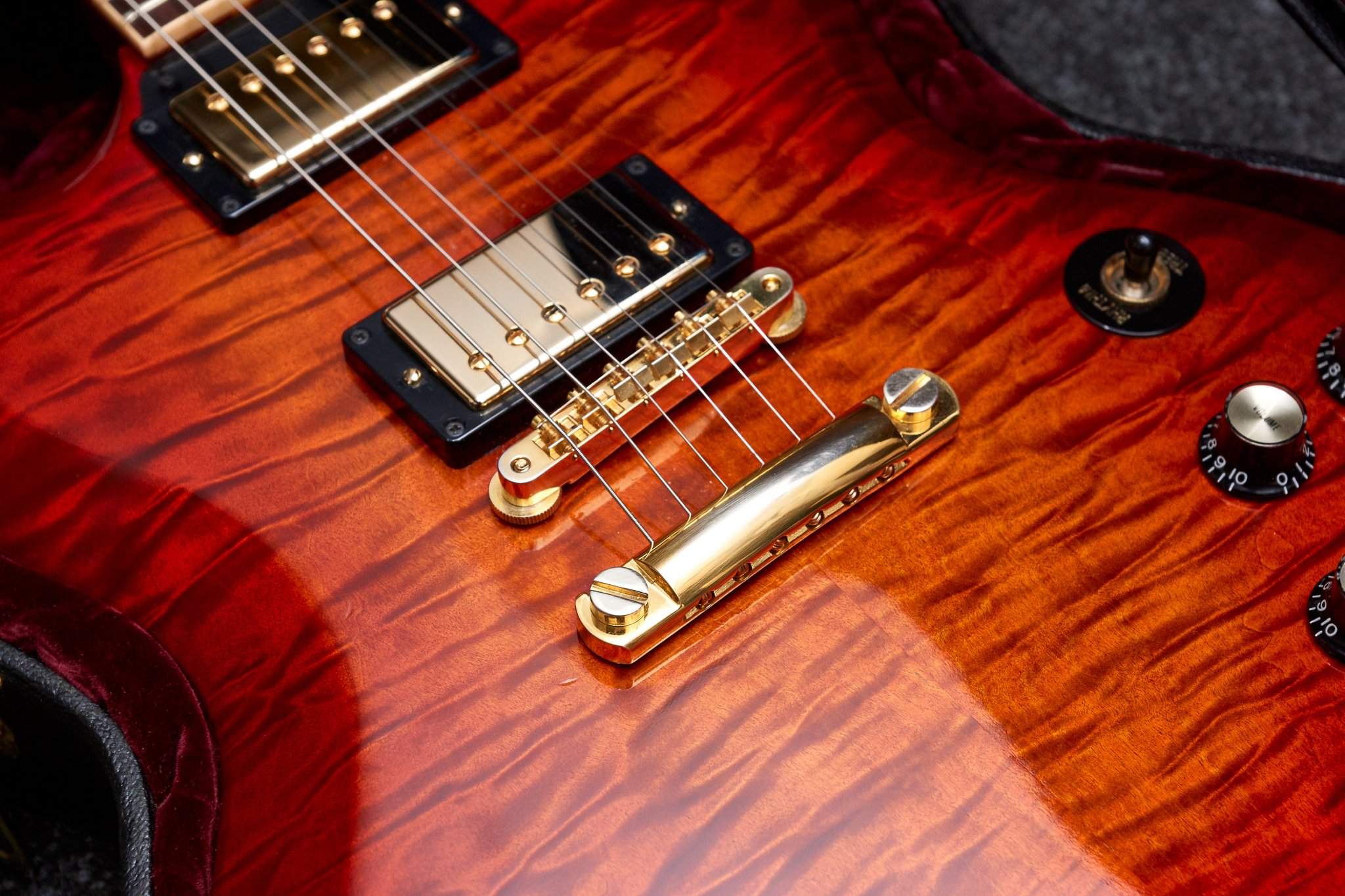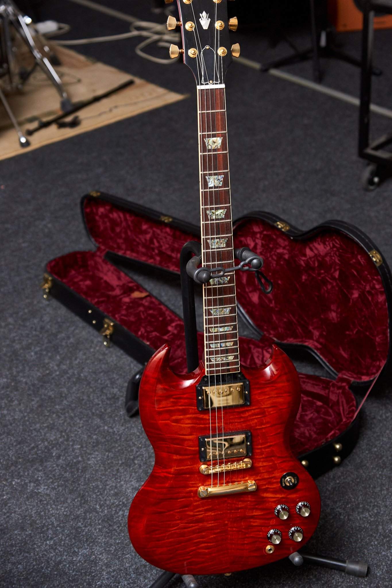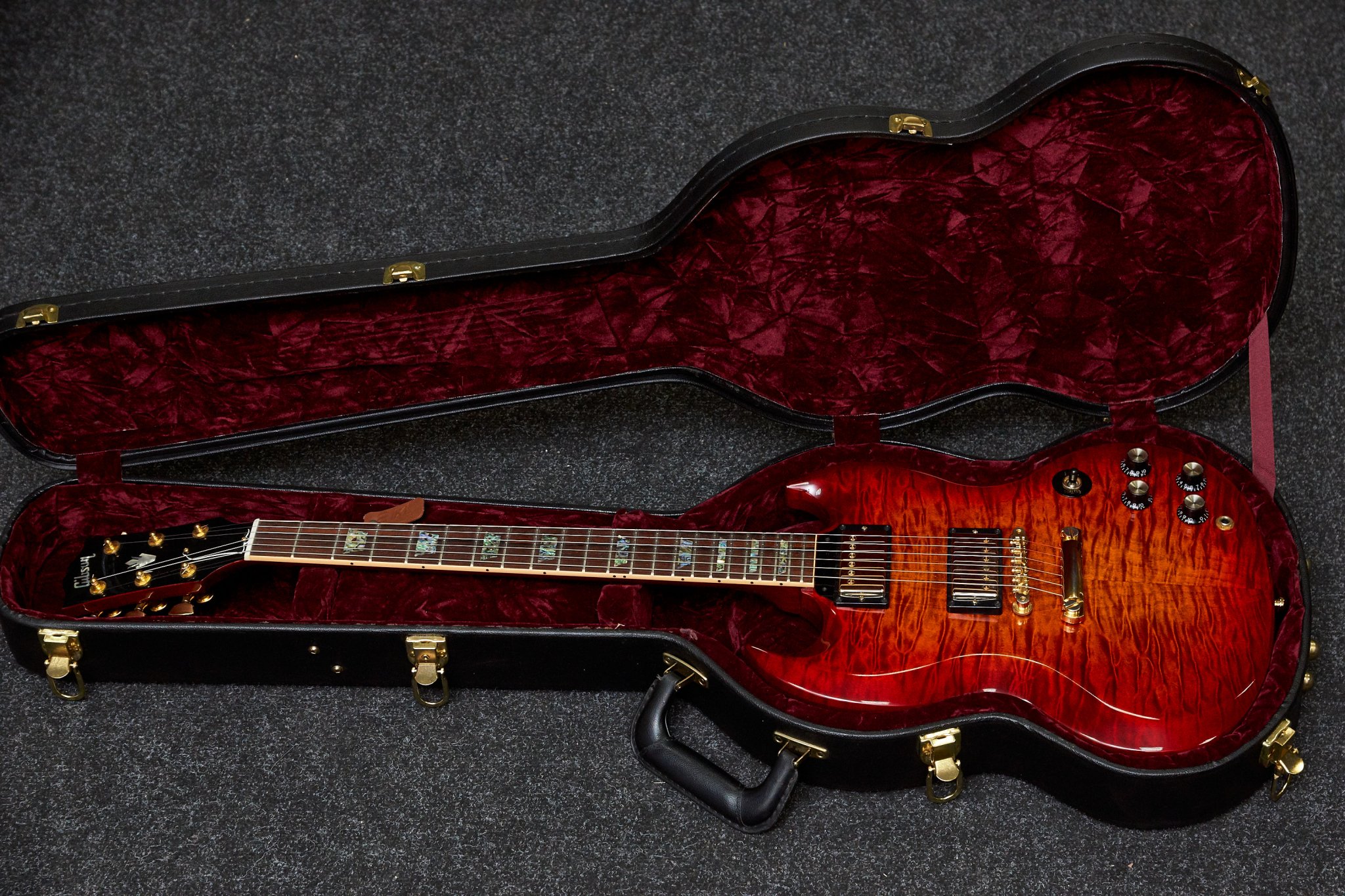 Продам электрогитару Gibson Custom Shop SG Elegant Quilt Top Firemist 2006г USA.Цена205000руб.Гитара в отличном состоянии,находится в моей небольшой личной коллекции.Родные колки заменены на локовые SPERZEL trimlok gold предыдущим владельцем.Звукосниматели я заменил на новые gibson Burstbucker Pro NECK+Gibson 498T Bridge,хотелось звук по злее