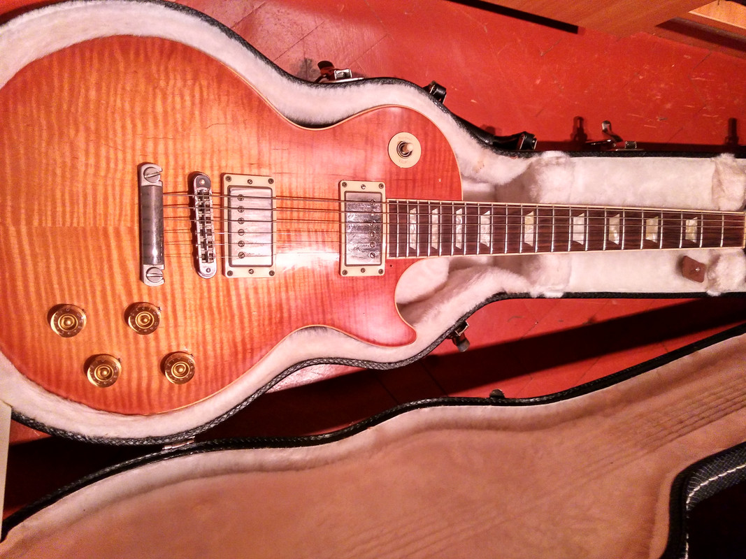 Питер. Продам отличный стандарт, 2005 год, 60-й(тонкий и удобный) профиль грифа, родные датчики Burstbucker Pro, дека из одного куска. Лады уже довольно низкие, но родные, струны низко, все отстроено для пилилова(см. видео). Установлены потайные стреплоки, а также верхний порожек Graphtech. С гитарой идет мягкий толстый чехол, родной пикгард и анкерный ключ. Кейса нет.